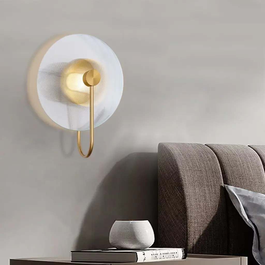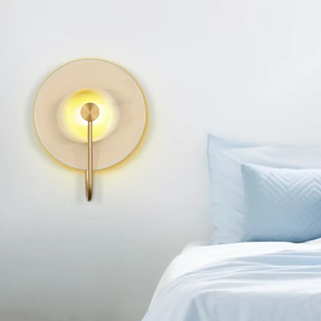 Yiyibyus Modern Gold Round Led Wall Sconce With Glass Shade For Bedroom Living Room