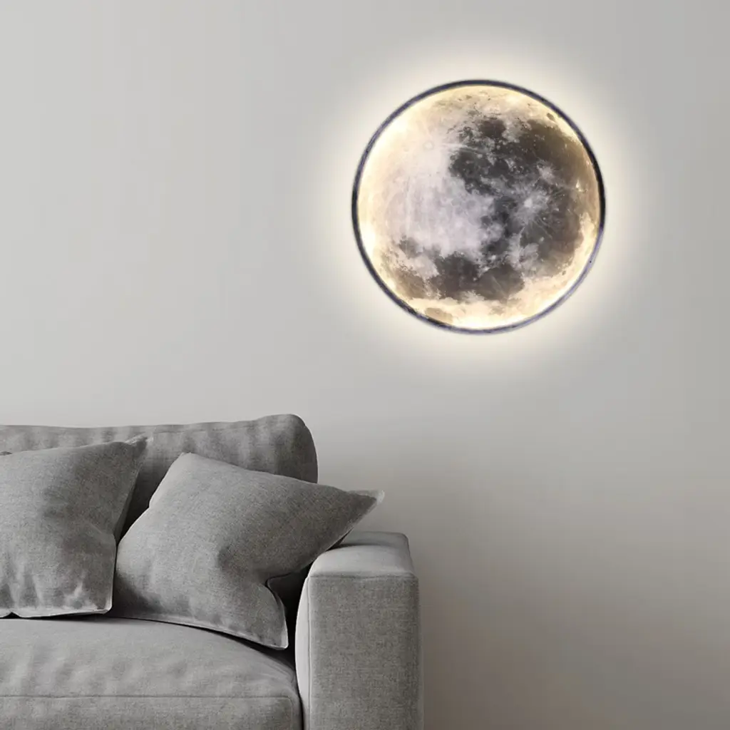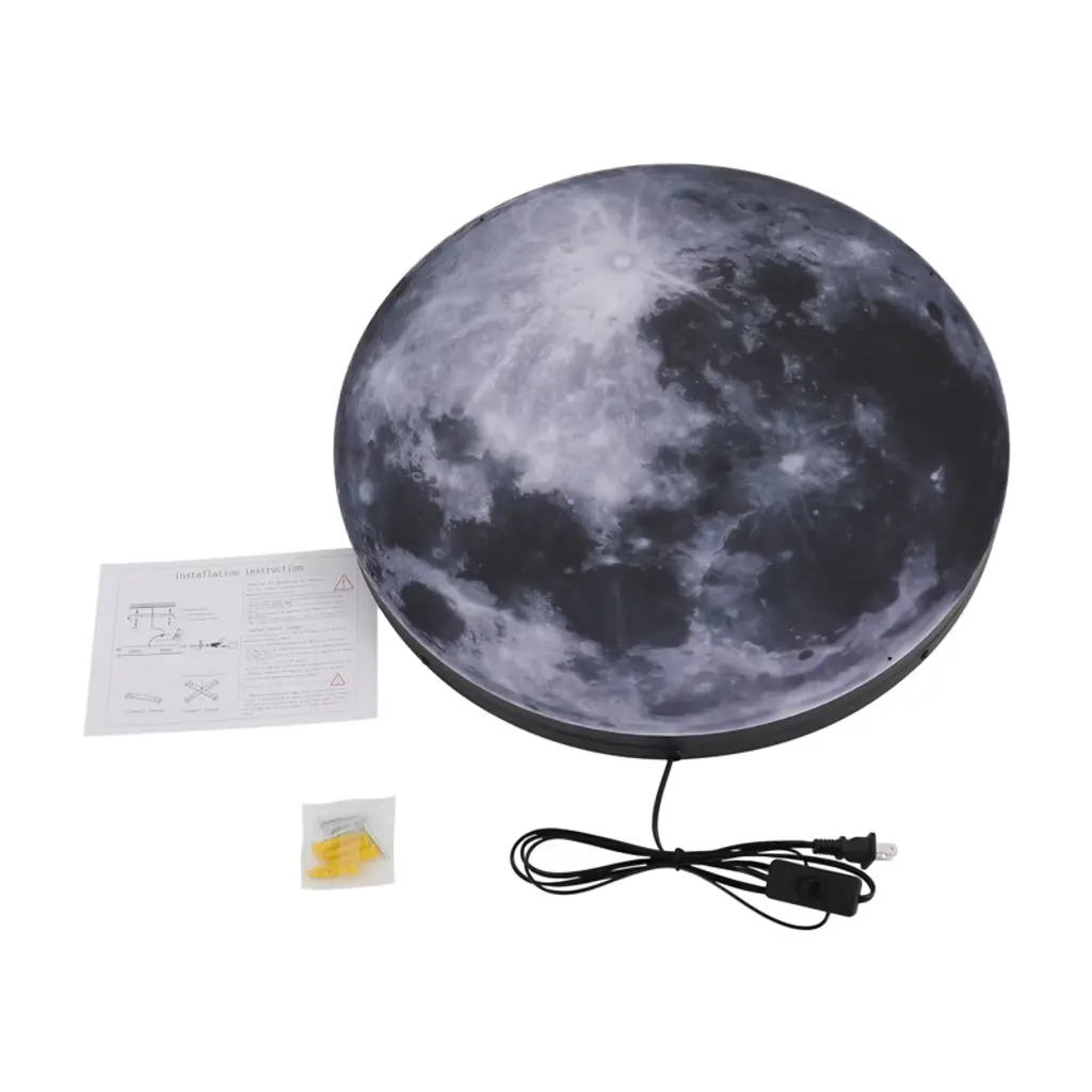 In this hustle and bustle of the modern world, the need for comfort and relaxation is growing stronger. We offer you this wall lamp with its chic design to create a peaceful and comfortable space for you to relax. It has the advantages of a beautiful appearance, suitable brightness, functionality, and so on. It can be used indoors for reading or relaxing and is an indispensable companion for your home. Details Acrylic Lampshade: It has excellent light transmission, ensuring that light is dispersed evenly and softly, creating a comfortable lighting environment. Long Power Cord: The 5.91ft cable in the product connects the light strip, which reduces usage limitations, ensures good performance, and extends the life of the product. Rounded Edges: They can protect your hands from being scratched during installation and use and also enhance the aesthetics of the product. Specifications Material: Iron, Acrylic Color: Shown as Picture Style: Modern Process: Frosted, Baking Paint Efficiency: E Shape: Round Pattern: Moon Mount Type: Wall Mount, Ceiling Mount Assembly Required: No Indoor/Outdoor Usage: Indoor Power Source: Corded Electric, Hard Wired Plug Type: US Standard Light Fixture Form: Wall Sconce, Ceiling Lamp Light Source: LED Strip(Included) Light Color: White, Neutral, Warm Color Temperature: Warm (3000-3300K), White(6000-6500K), Neutral(4000-4200K) Control Mode: Pushbutton Switch Rated Voltage: 110V Input: AC 85-265V 50/60HZ Output: DC 75-120V 260mA±5% Power: 24W Power Cord Length: 1.8 m/5.91ft Product Diameter: 50cm/19.7in Product Thickness: 40mm/1.6in Applicable Space: 12-15m²/129.17-161.46ft²