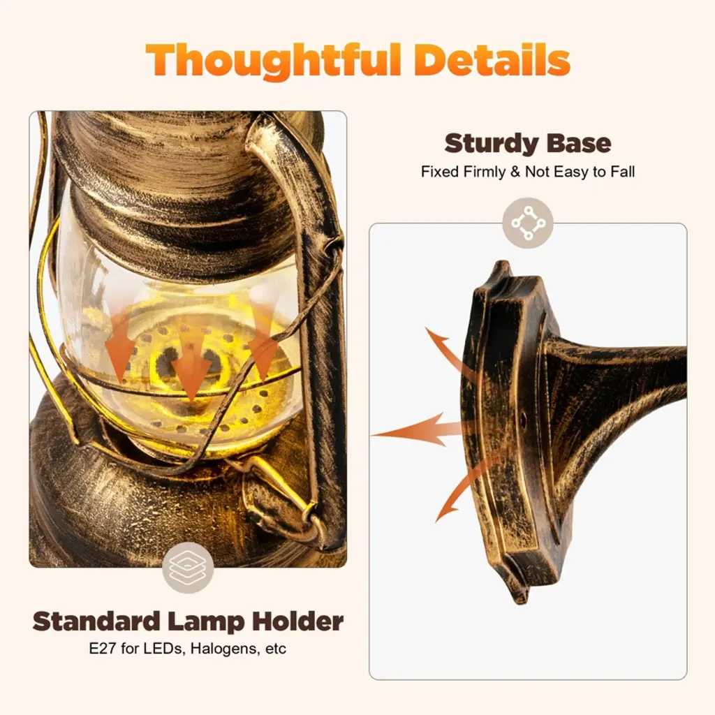 The lamp body is made of metal and plastic, which is strong and durable. Due to the unique technology, the lamps are high-temperature-proof. The lamps are retro and beautiful, and are like the portable lamps in Jane Eyre. The waterproof performance of this lamp is weak, so please try to install it in a dry place. Specifications Material: Iron, Plastic Process: Painting Style: Retro Color: Brass Assembly Required: Yes Efficiency: E Mounting Type: Wall Mount Indoor/Outdoor Usage: Indoor Switch Type: Wall Control(Not Included) Voltage: 165-265V Light Source: 1* E27 Bulb (Not Included) Bulb Power: 5W Applicable Area: Within 5m²/53.8ft² Base Diameter: 10cm/3.94in Product Size: 18*18*38cm/7.09*7.09*14.96in