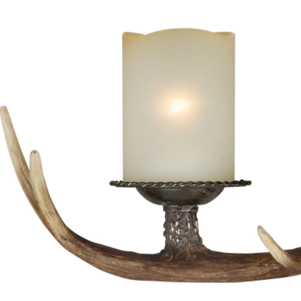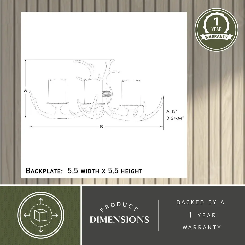 Evoking the spirit of the wilderness, this rustic themed light is clad in a black walnut finish and features crème cognac glass. It will complement a variety of home styles bringing an element of nature indoors. The Yoho collection features reproduction deer antlers making it a great choice for a vacation lodge, cabin or suburban homes. This bathroom light is perfect over medium vanities or as a pair over double sinks.