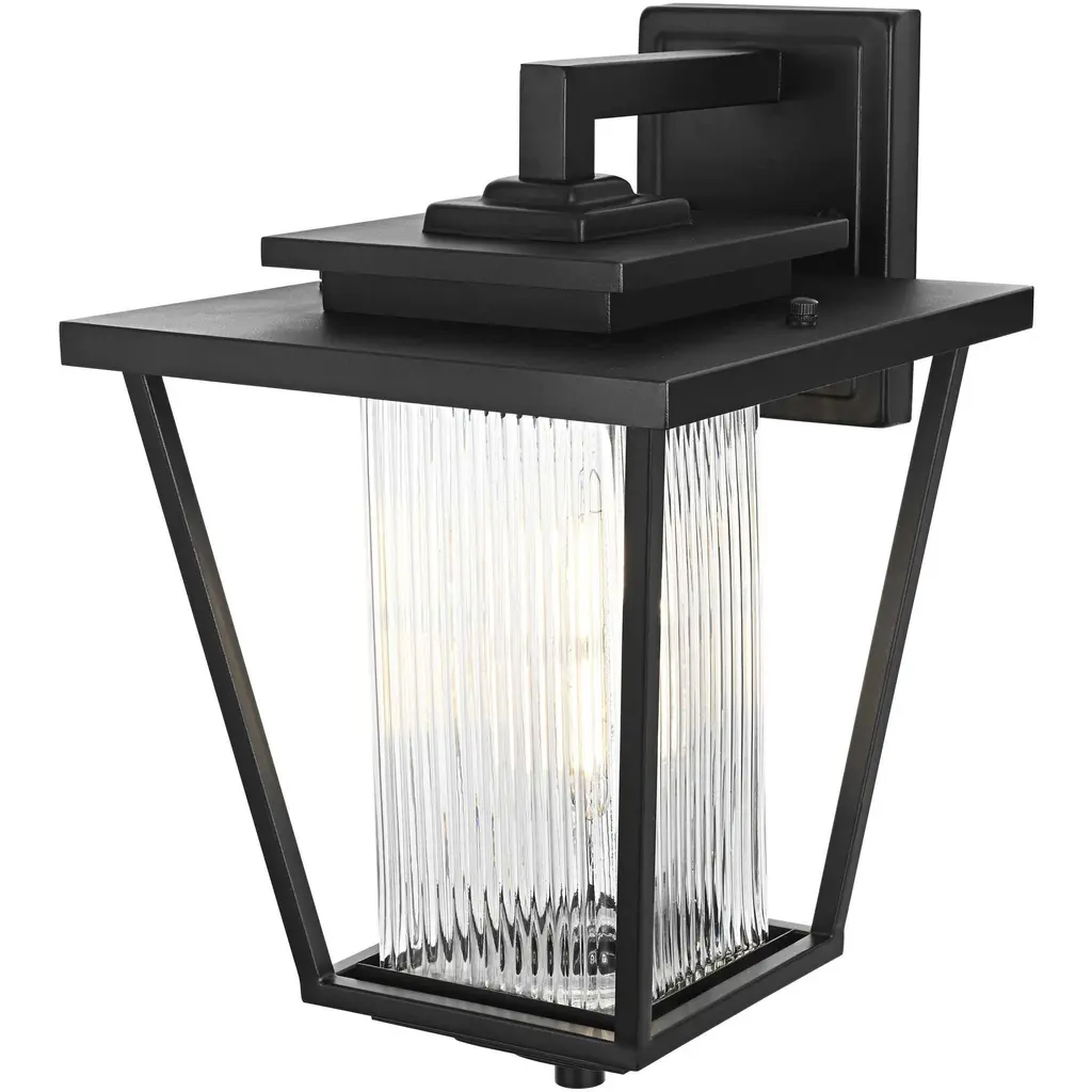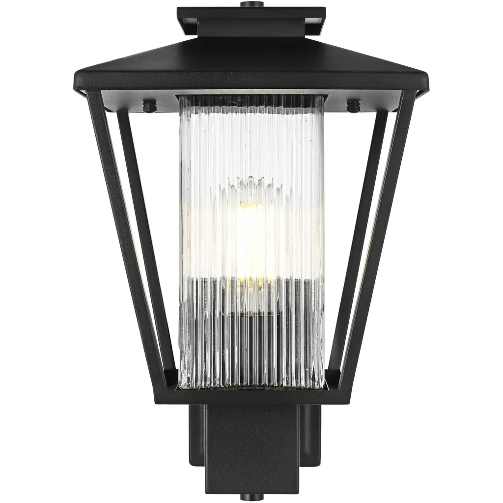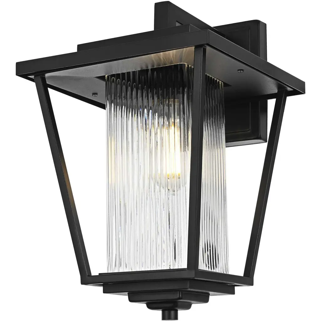 Add a touch of modern industrial flair to your home's exterior with this outdoor wall sconce. Featuring a matte black iron frame and ribbed glass panels, this sconce brings a sophisticated yet understated charm to your outdoor decor. The ribbed glass diffuses light softly, providing an inviting glow that's perfect for illuminating patios, doorways, or garden paths. Built to withstand the elements, this wall sconce is as durable as it is stylish, ensuring a reliable lighting solution for years to come. With its straightforward installation process, this light is a simple yet impactful way to upgrade your outdoor space.
