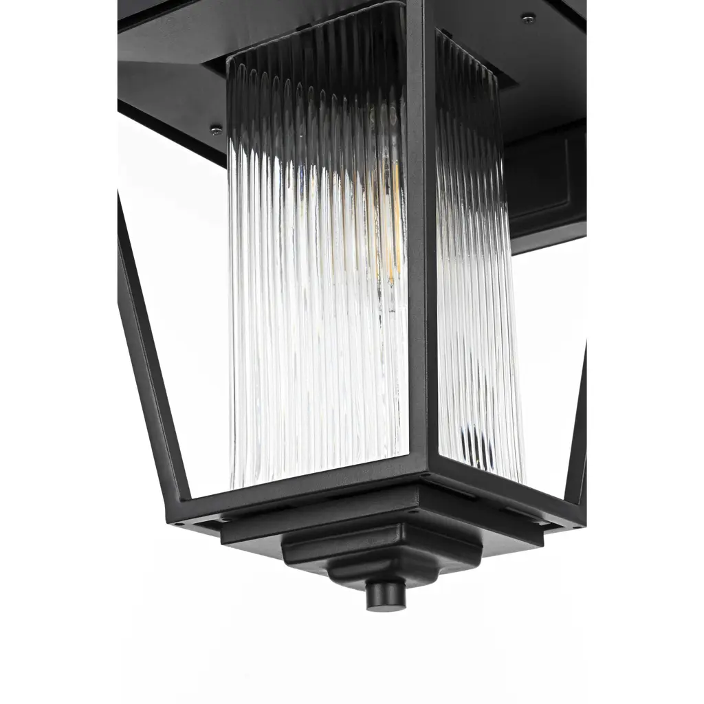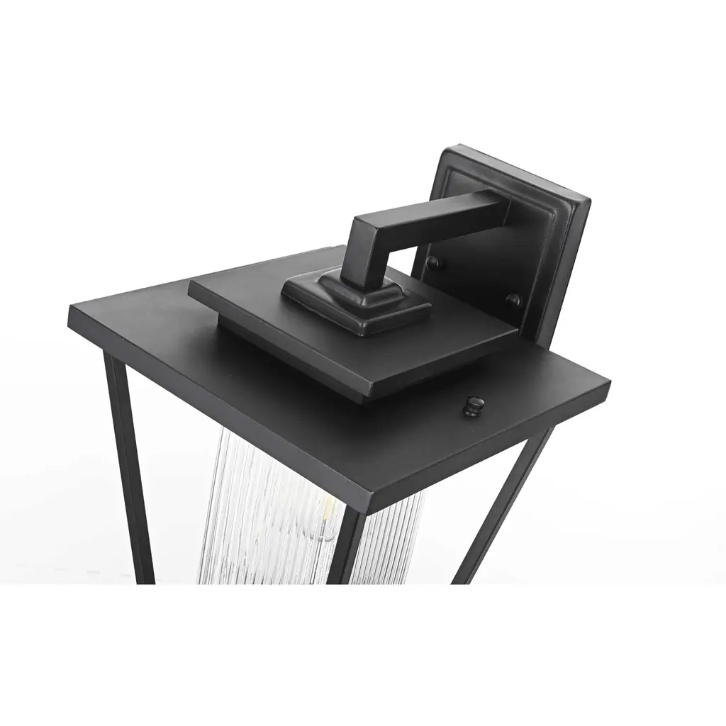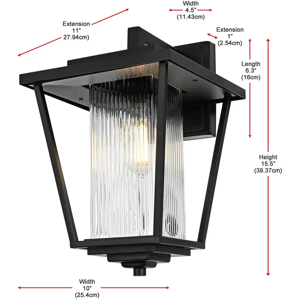 Add a touch of modern industrial flair to your home's exterior with this outdoor wall sconce. Featuring a matte black iron frame and ribbed glass panels, this sconce brings a sophisticated yet understated charm to your outdoor decor. The ribbed glass diffuses light softly, providing an inviting glow that's perfect for illuminating patios, doorways, or garden paths. Built to withstand the elements, this wall sconce is as durable as it is stylish, ensuring a reliable lighting solution for years to come. With its straightforward installation process, this light is a simple yet impactful way to upgrade your outdoor space.