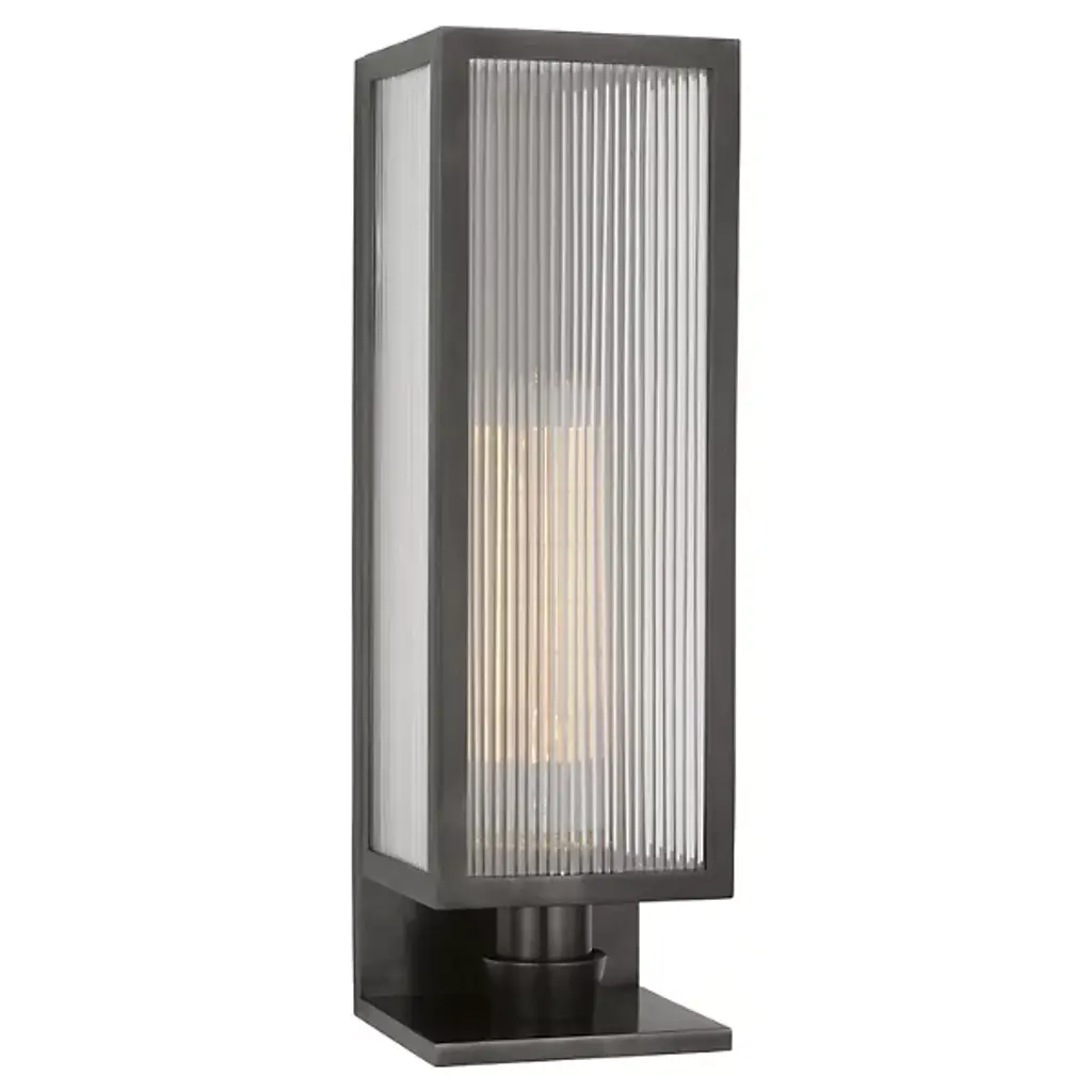 The York Single Box Wall Sconce by Visual Comfort Signature, featuring clear ribbed glass, is a remarkable marriage of style and durability. Designed by the talented Barbara Barry, it resonates with her artistic flair and meticulous craftsmanship. This outdoor wall sconce not only ensures enduring construction but also emits a timeless charm that adds sophistication and grace to your outdoor spaces. It is a testament to Barry's design prowess, blending classic aesthetics with innovative functionality, even in outdoor lighting.