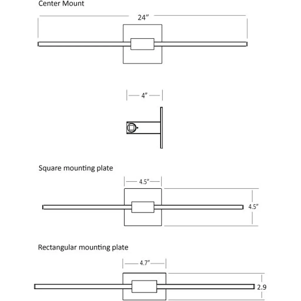 Z-Bar Led 24 Inch Matte White Wall Sconce Wall Light, Center Mount