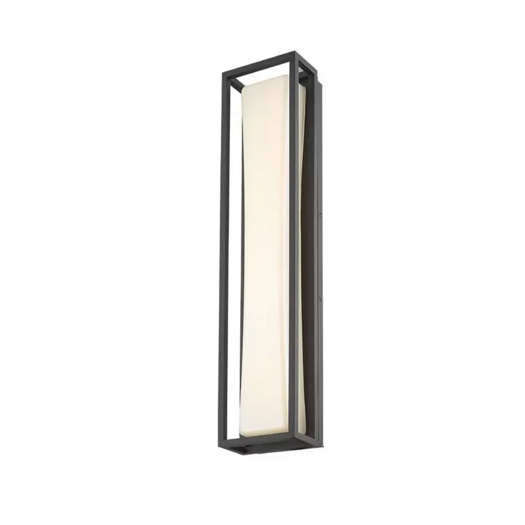 Take note of a subtly concave shape adding intriguing visual optics to the white polycarbonate lens of this modern Baden one-light outdoor light. With a rectangular black finish aluminum frame, this fixture features a replaceable energy-saving LED light source, adding to its popularity and utility. Dimmable: Yes Shade Included: Yes Material: Aluminum, Finish Color: Black, Width: 5", Height: 24", Length: 3.75", Backplate Width: 24", Backplate Length: 5", Lamping Type: LED, Number Of Bulbs: 1, Wattage: 23 Watts, Cri: 90, Color Temperature: 2700 Kelvin, Lumens: 800, Dimmable: Yes, Moisture Rating: Wet Rated