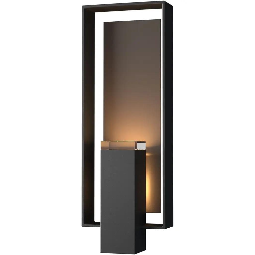 From the Barwick collection comes this ultra-modern outdoor wall sconce, perfect for mounting inside a porch entryway or flanked beside a patio door. With an open rectangular aluminum cage in a deep black finish, this wall sconce lends itself to practically any building facade colors or outdoor entertainment area color scheme. This striking wall sconce also features an etched glass light with an energy-efficient LED-integrated lamp tucked beneath.