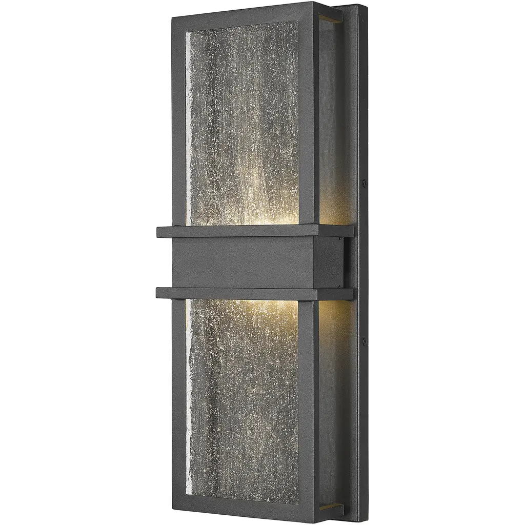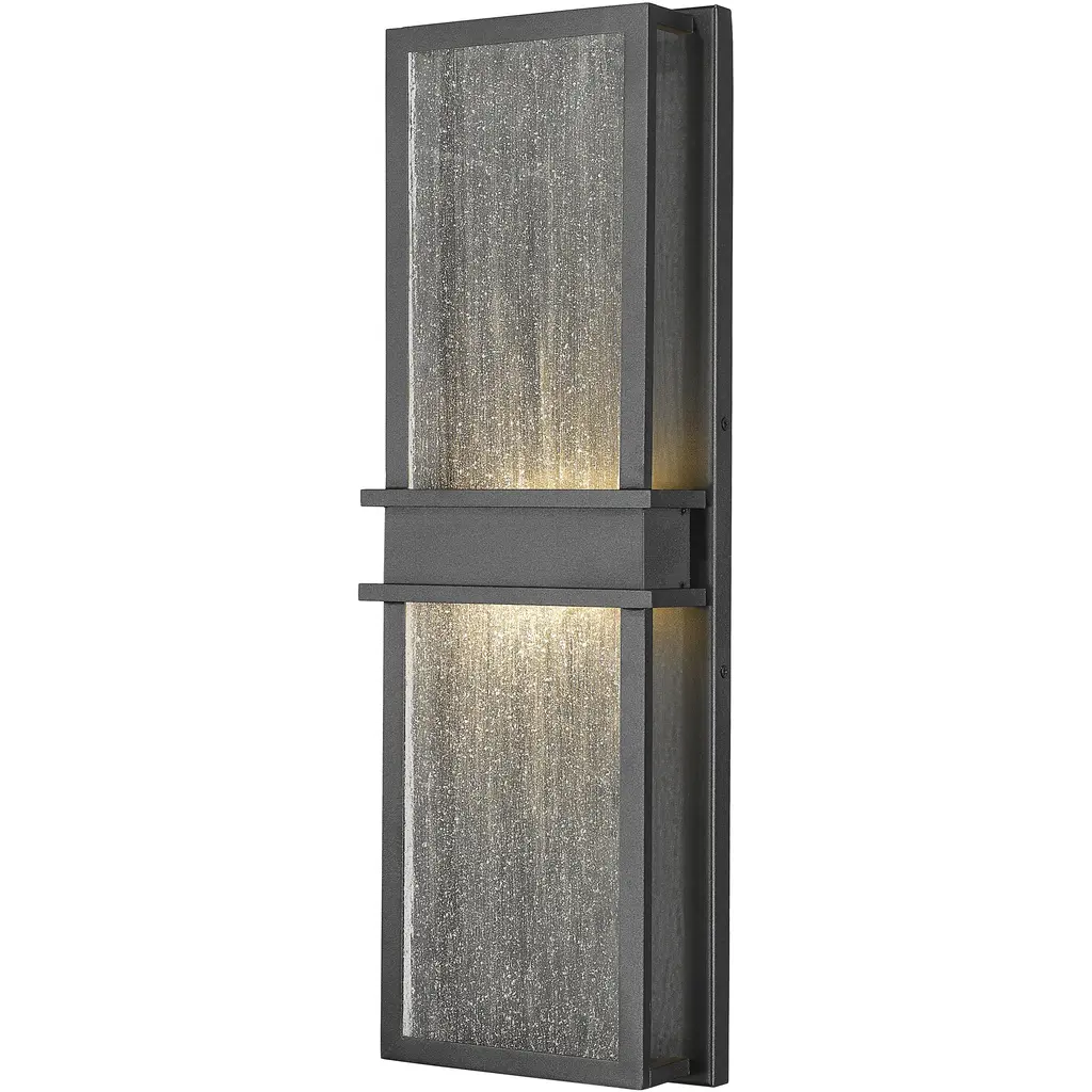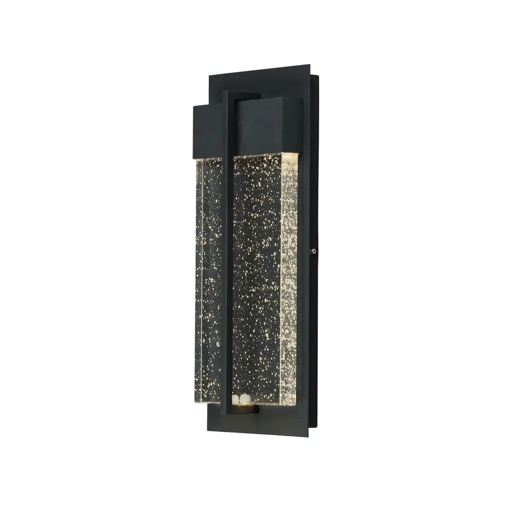 A bold contemporary design, Eclipse supplies ample illumination (including upward and downward light) without any glare, thanks to a cleverly engineered central band that conceals the long-lasting LED light source. This contemporary fixture casts a warm, soft glow behind the beautiful, seeded glass front panel. A handsome Black finish completes the upscale look. Room Recommendation: Outdoor Living Dimmable: Yes Shade Included: Yes