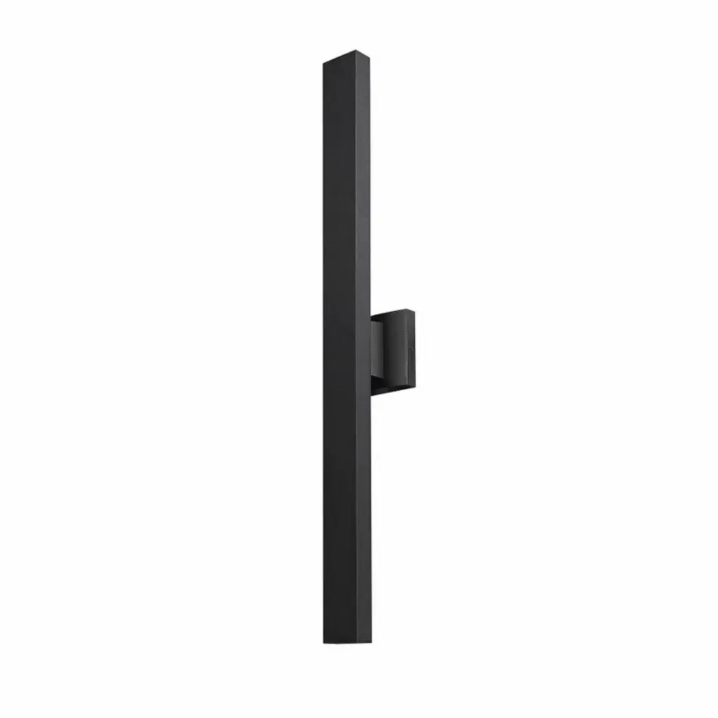 Linear design standards adopt an iconic simplicity with contemporary verve as this two-light outdoor wall sconce offers a visual impact to any space. This fixture from the Edge collection offers construction of bold black finish aluminum with a sandblast glass shade. Create a minimalist approach to ambient and accent outdoor lighting.