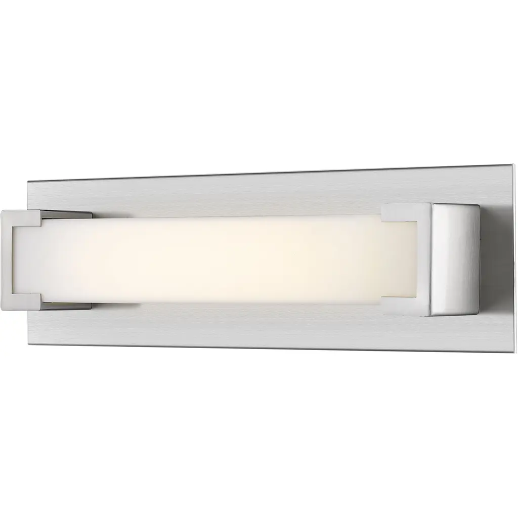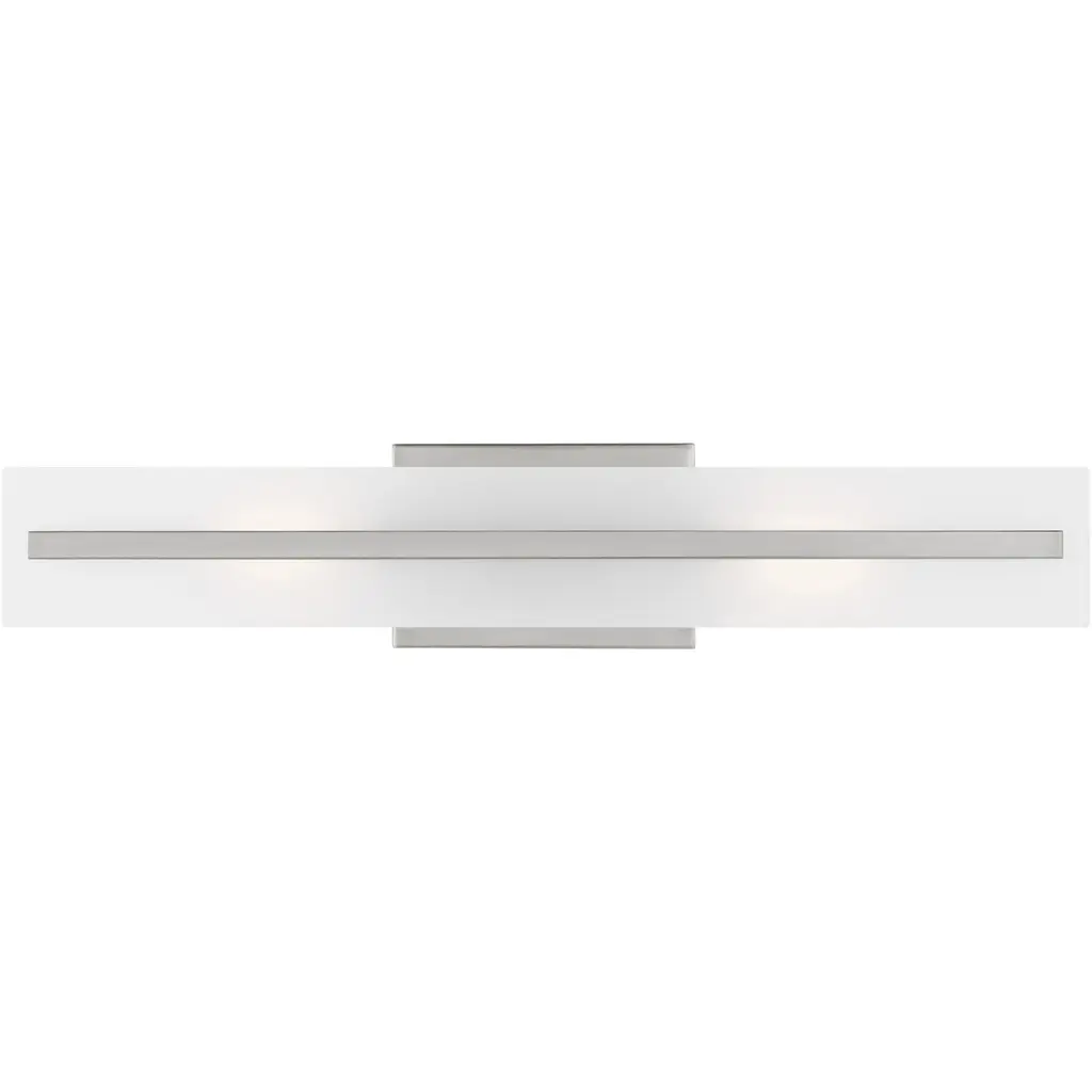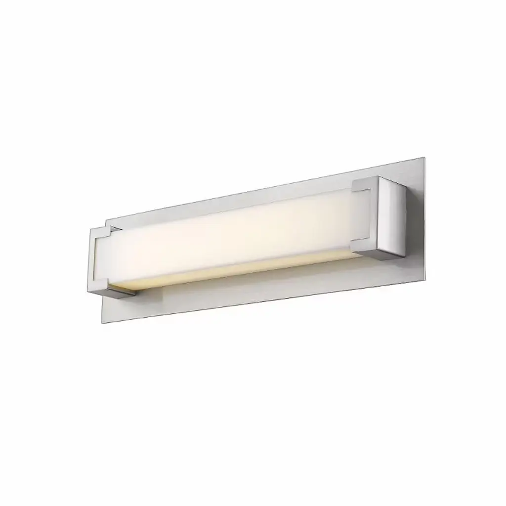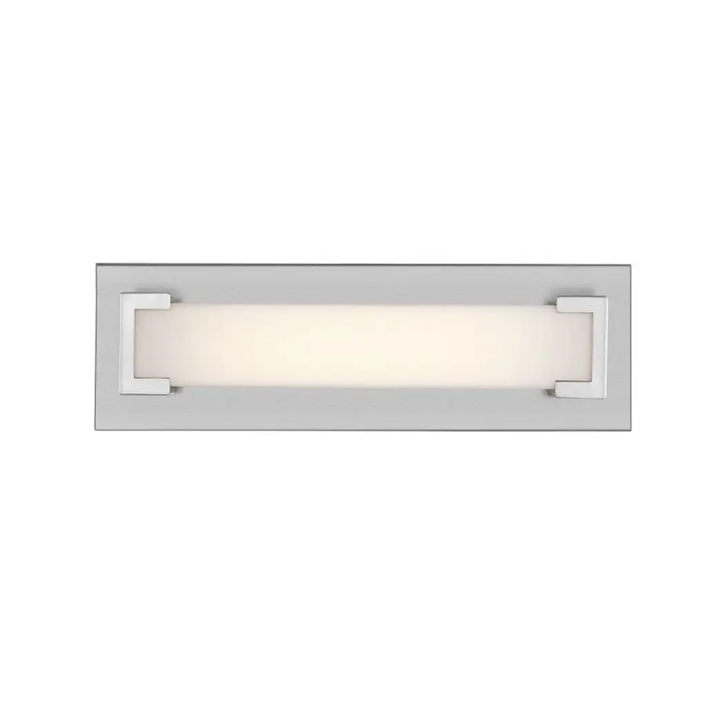 Spruce up a bath space with the Art Deco appeal of this brushed nickel vanity light. Offering integrated LED energy-efficient bulb is shielded by a sleek white frosted diffuser. Material: Acrylic, Finish Color: Brushed Nickel, Width: 21.7", Height: 4.5", Length: 2.3", Depth: 2.3", Backplate Width: 4.5", Backplate Length: 21.73", Lamping Type: LED, Number Of Bulbs: 1, Wattage: 15 Watts, Cri: 90, Color Temperature: 3000 Kelvin, Lumens: 744, Dimmable: Yes, Moisture Rating: Damp Rated