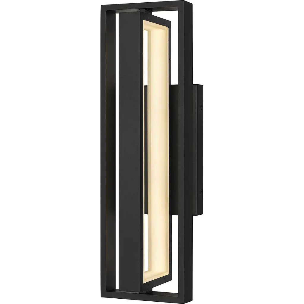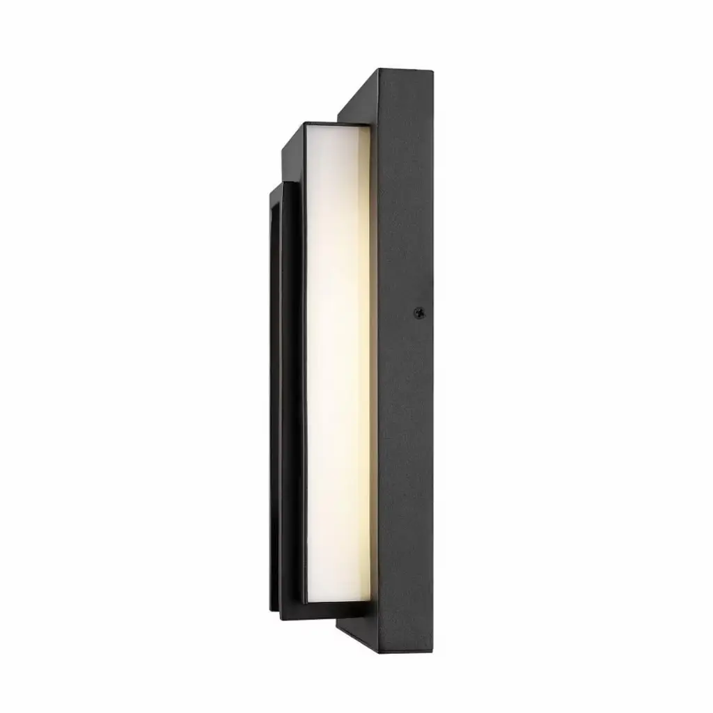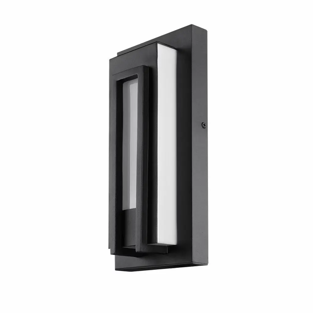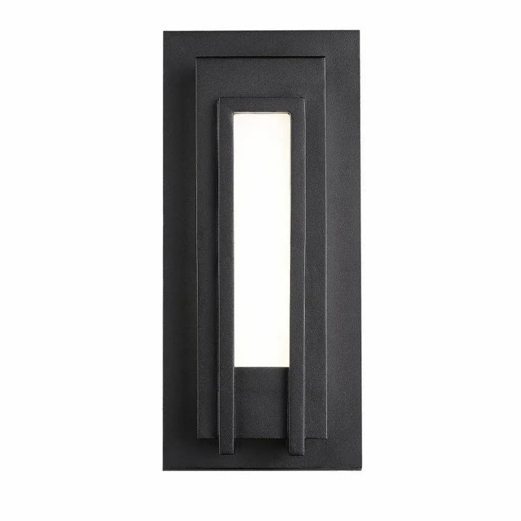 This outdoor wall sconce from the Keaton collection adds a striking geometric vibe and dimensionality to any structure. Update a contemporary exterior structure with this light built of black and white aluminum with overlapping rectangular panels. Energy-efficient LED lighting offers savings and extends the life of a chic fixture. Material: Aluminum, Finish Color: Black, Width: 5.5", Height: 12.5", Length: 3", Backplate Width: 5.5", Backplate Length: 12.5", Lamping Type: LED, Number Of Bulbs: 1, Wattage: 12 Watts, Cri: 90, Color Temperature: 2700 Kelvin, Lumens: 280, Dimmable: Yes, Moisture Rating: Wet Rated