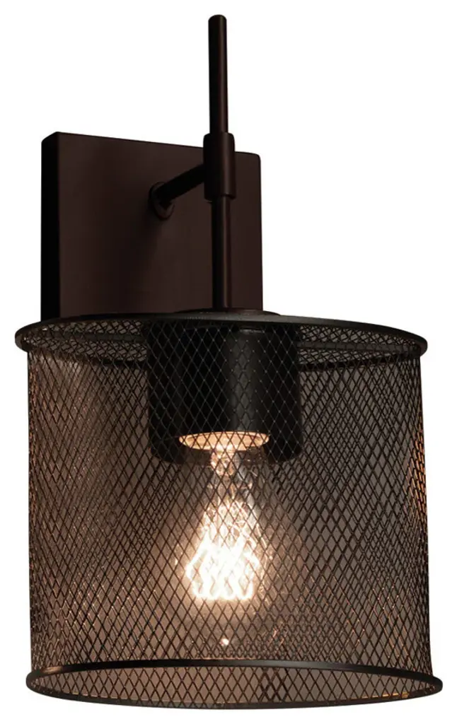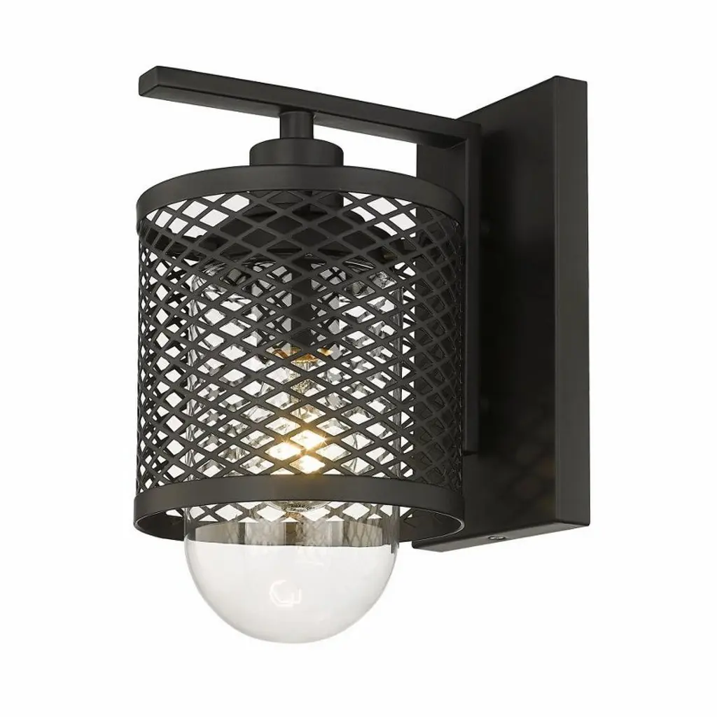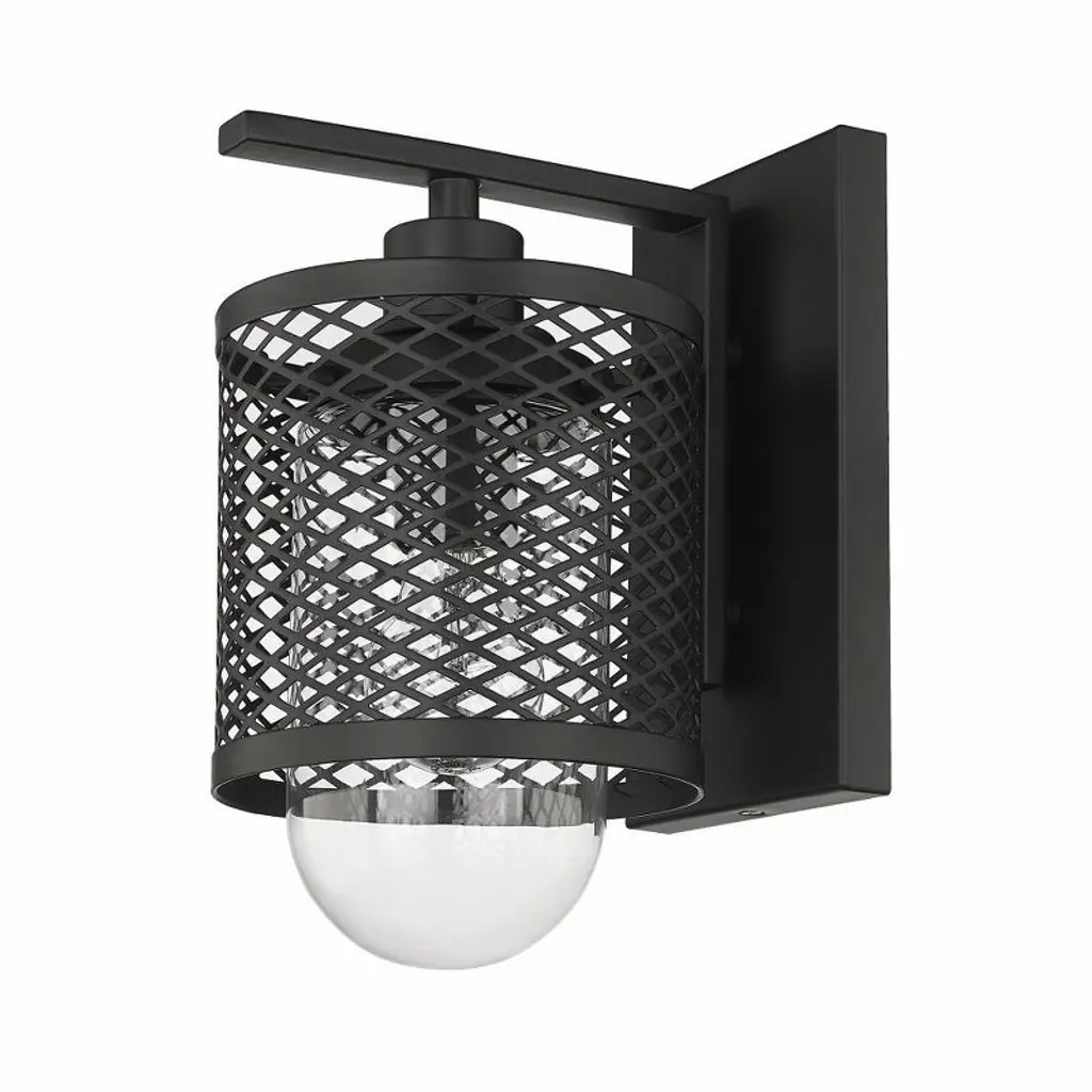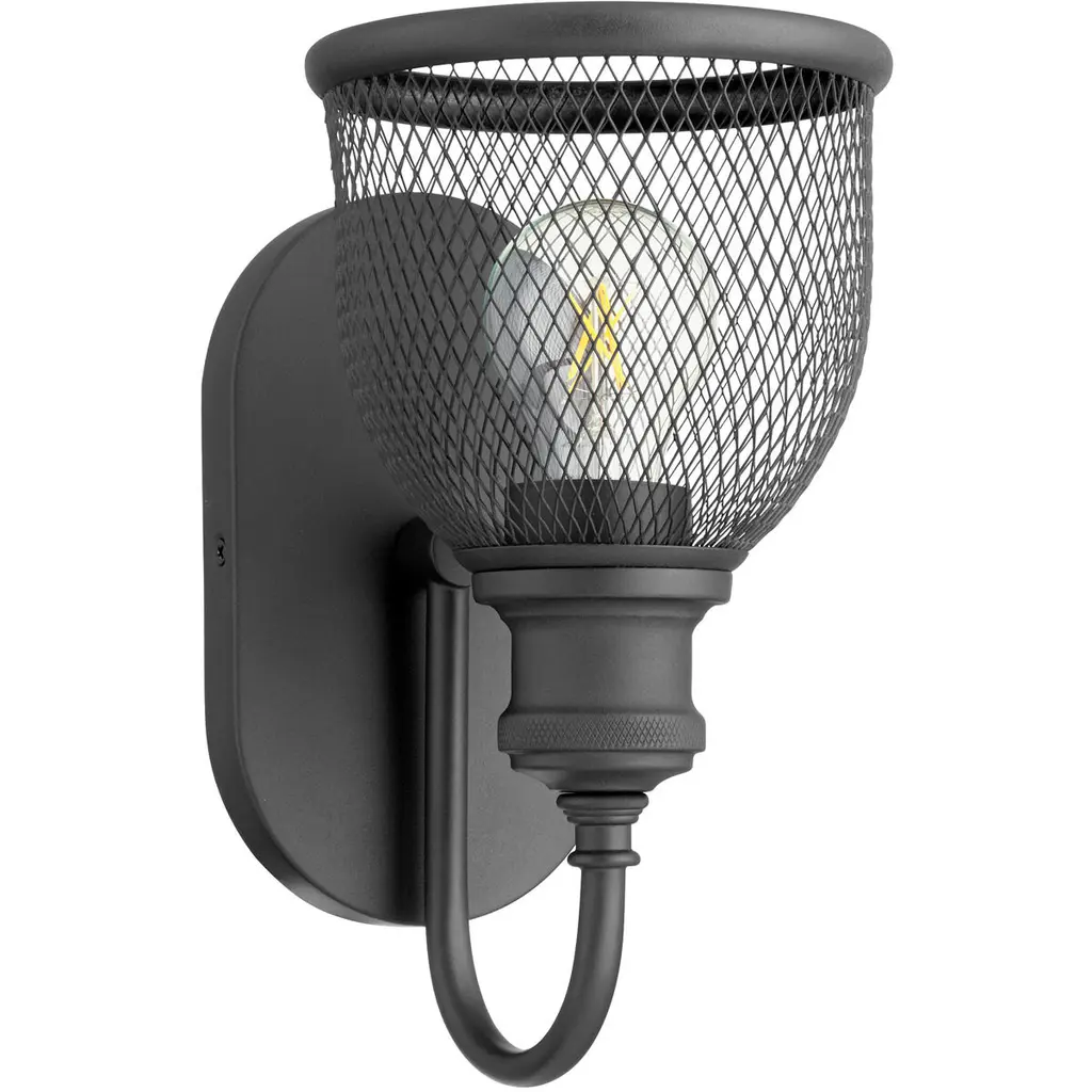 Industrial modern influences make way for this metropolitan single light sconce. A perfect addition for bathroom vanities and welcoming foyers, this transitional wall sconce features a classical mesh metal cage in a bold matte black finish for a contrasted element of surprise. A clear glass interior shade showcases filament bulbs, lending an old-world feel and is capped with clear globe that peeks out from beneath and offers a diffused glow.
