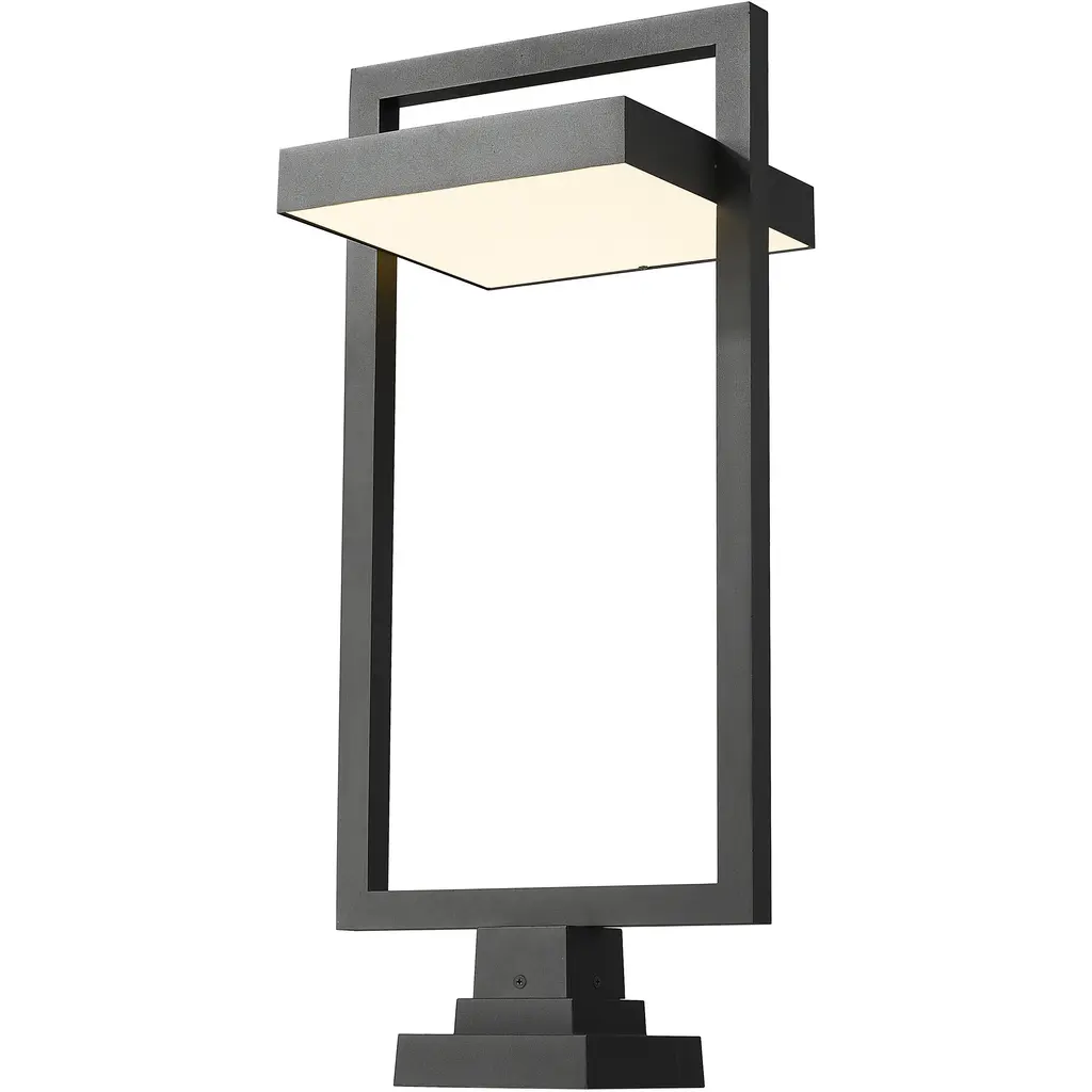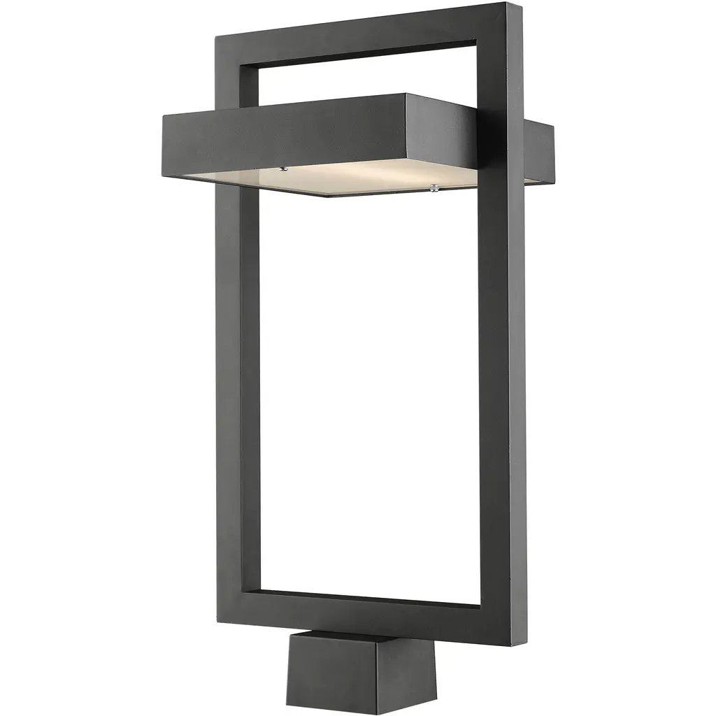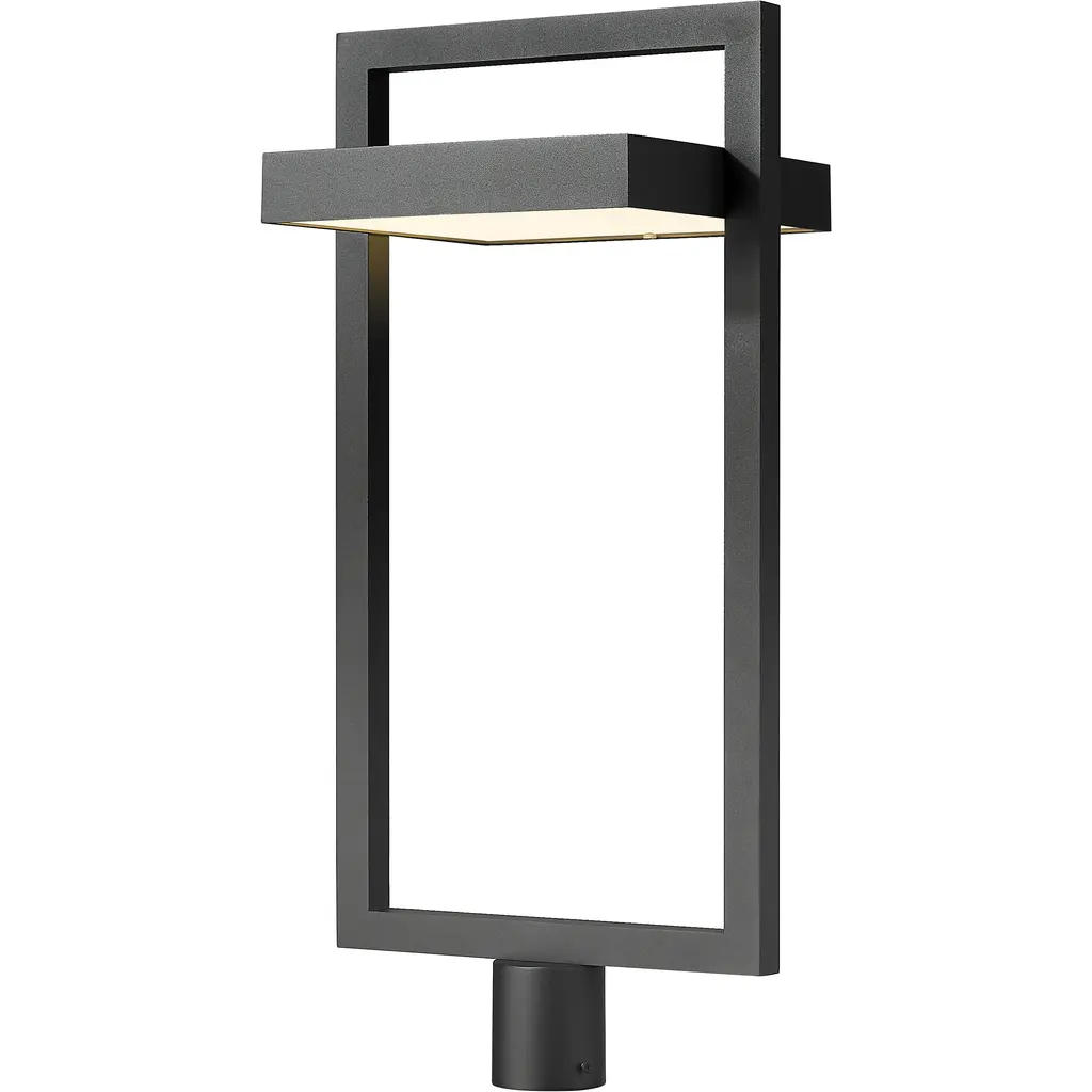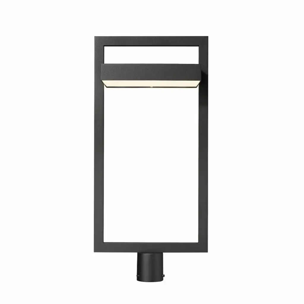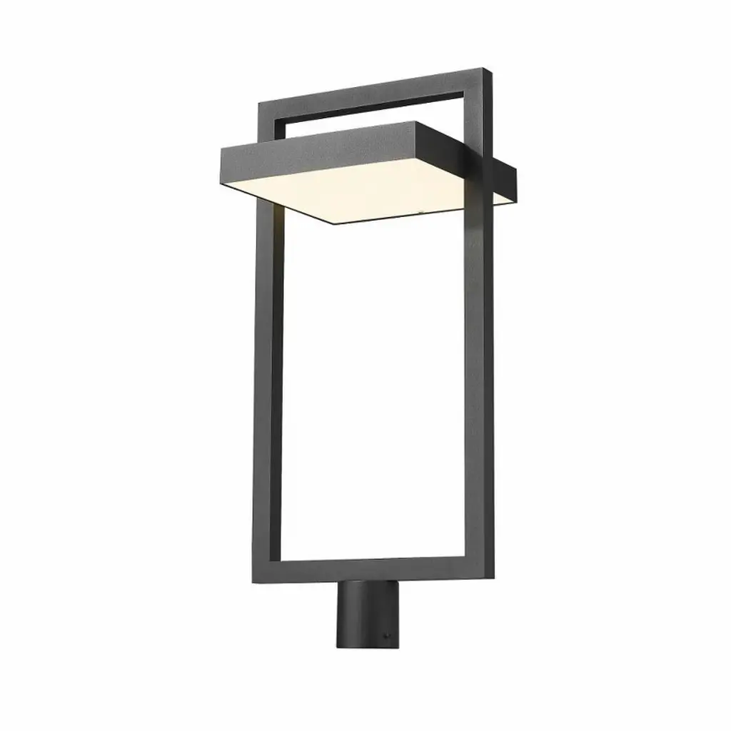 A cutting-edge solution for illuminating your contemporary patio, deck or garden area, this one-light outdoor post mount fixture delivers chic minimalism with its angular bold black finish aluminum frame. A sand blast finish white glass shade uses LED-integrated technology to provide a strong, energy-efficient glow to light up evenings outdoors. Color Temperature: 2700K Lumens: 1120 CRI: 90 Room Recommendations: Outdoor Living/Deck/Patio Shade Included: Yes