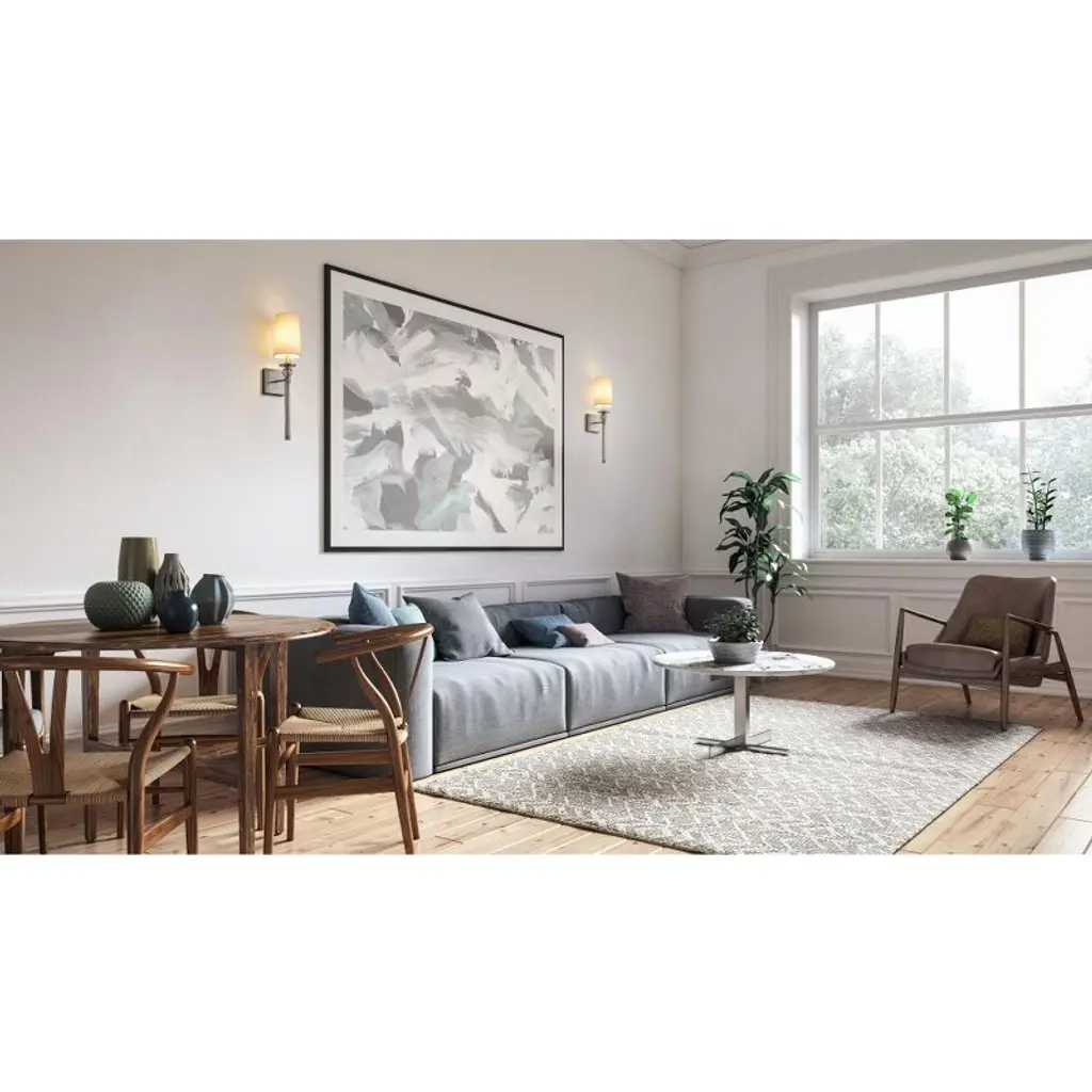 Light up a powder room, bedroom, or hallway with the exquisite artistry of this one-light wall sconce. A traditional lamp motif is modernized with tailored design elements featuring rubbed brass finish steel and crystal. Topped with a fresh white fabric shade, this sconce becomes part of a sophisticated look in a contemporary or transitional space. Bathroom/Powder Room/Bedroom/Hallway Shade Included: Yes Dimmable: Yes