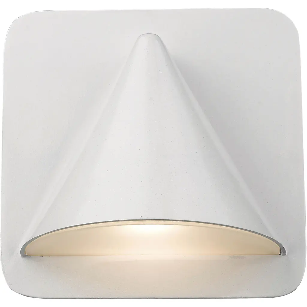 Illuminate a pathway or deck with this energy-efficient LED wall light in black. Crafted in metal, the sconce features a square backplate with a half-cone light profile complete with sand blasted glass that creates wonderful dimensionality. Color Temperature: 2700K Lumens: 334 CRI: 90 Outdoor Living Mounting Direction: Up/Down Shade Included: Yes Dimmable: Yes