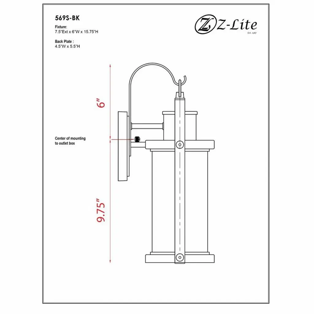Transform an outdoor space with the sleek lines from this outdoor wall light. The sleek silhouette features a clean black hue that is full of structure. Outdoor Living Shade Included: Yes Dimmable: Yes Material: Glass, Finish Color: Black, Width: 6", Height: 15.75", Length: 7.5", Depth: 7.5", Backplate Width: 5.5", Backplate Length: 4.5", Lamping Type: Incandescent, Number Of Bulbs: 1, Wattage: 60 Watts, Dimmable: Yes, Moisture Rating: Wet Rated