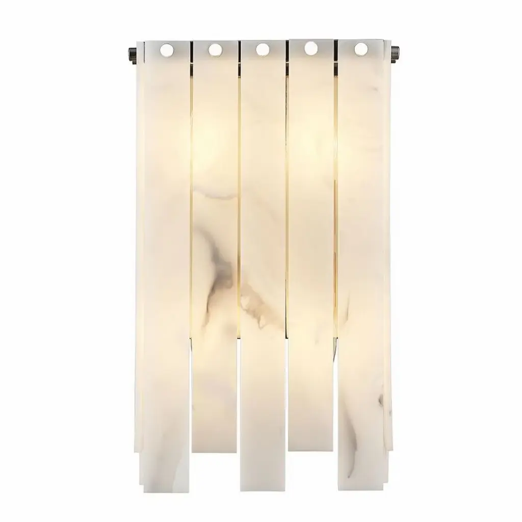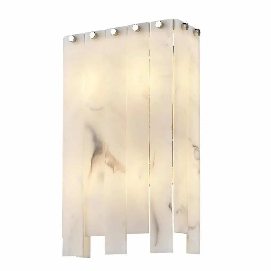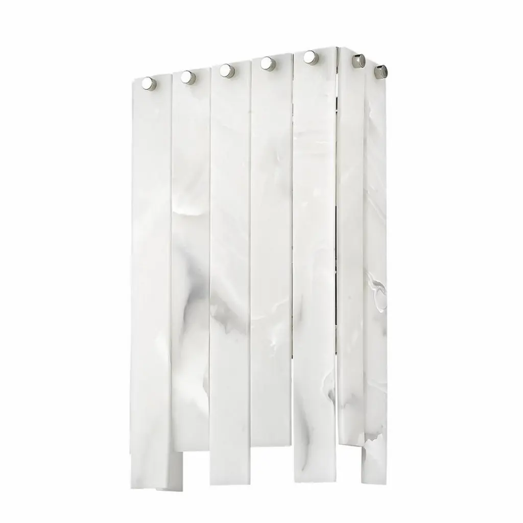 Strive for eye-catching artistry in the mode of Art Deco as you outfit a custom space with ambient and accent lighting. This four-light wall sconce from the Viviana collection creates impact with alabaster-like strips alternating in length and arranged around a rectangular polished nickel finish steel frame. Dressed up with whimsical rivot detailing, this sconce goes with the flow as it complements a gritty rendition of toned-down glam in a main living setting, en suite, or bedroom.