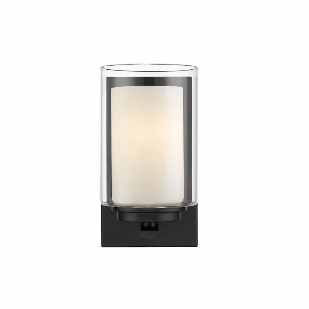 Give your bedroom or powder room a chic, sophisticated update. This beautiful, matte black wall sconce features a single, glowing bulb beneath a delicate, glass shade that's white on the inside and clear on the outside. An exquisite lighting option to highlight your refined sense of style. Bathroom/Powder Room/Bedroom/Hallway Mounting Direction: Up/Down Shade Included: Yes Dimmable: Yes