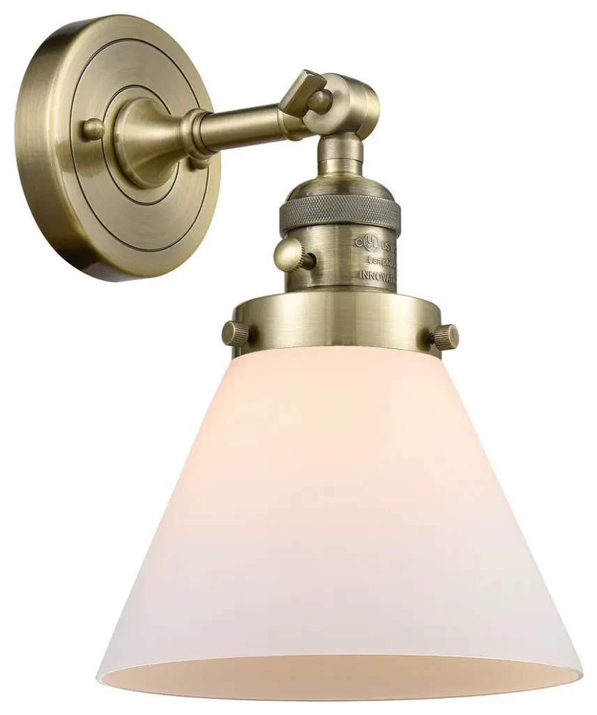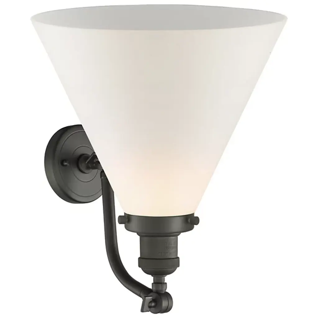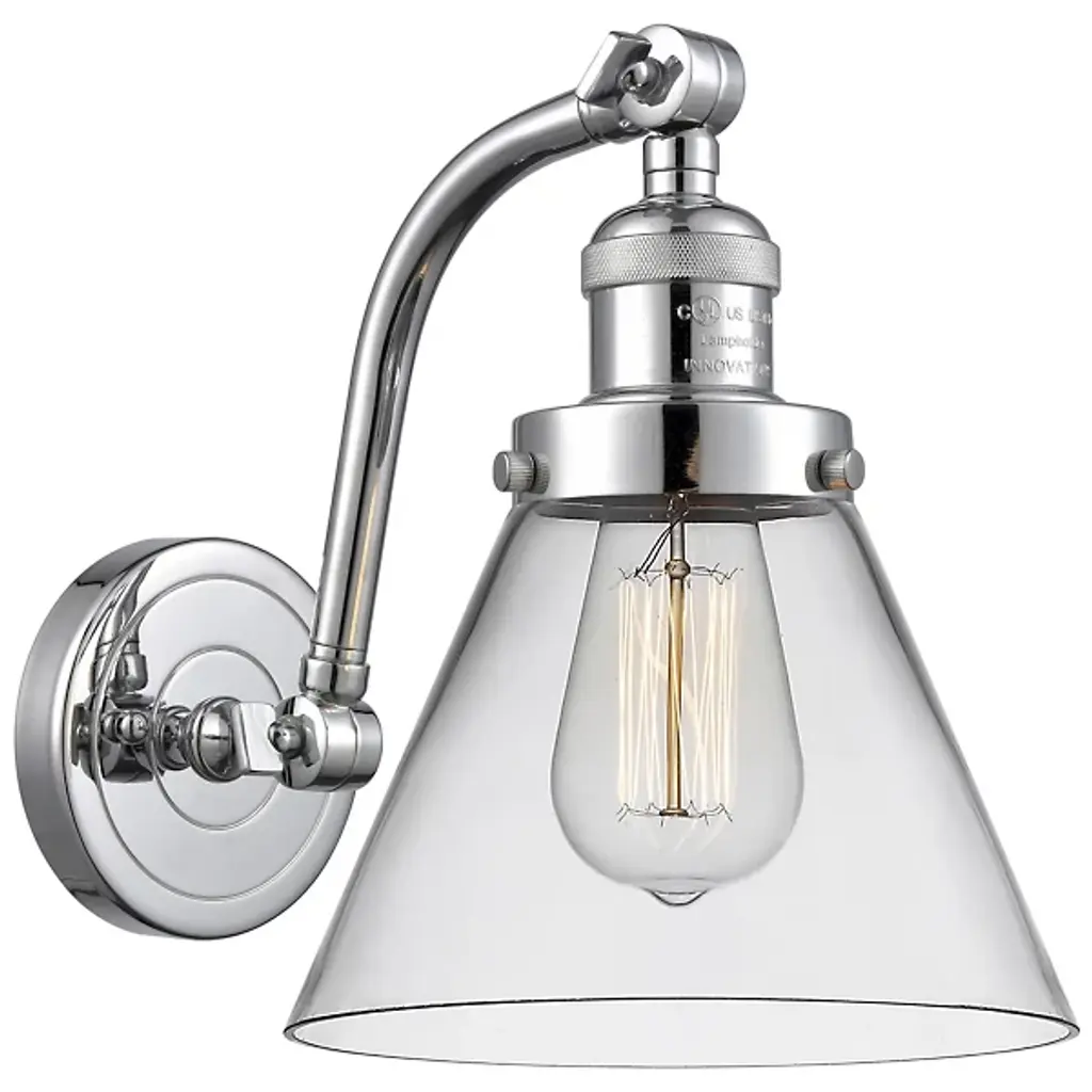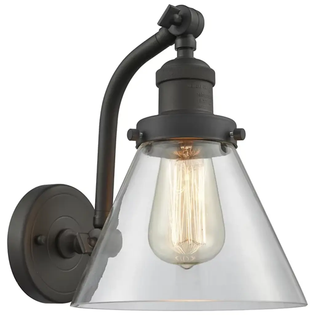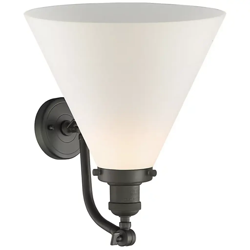 The Zachary Glass Curved Arm Wall Sconce by Alder & Ore brings vintage industrial charm to home or office lighting. A Bruno Marashlian design, this versatile steel and cast brass wall light features a curved arm with lockable swivels on each end. This allows for the light depth and lamp configuration to change as needed. Showcasing glass cone shades, this indoor wall sconce shines as decorative lighting in a living room, dining room, foyer, or hallway.