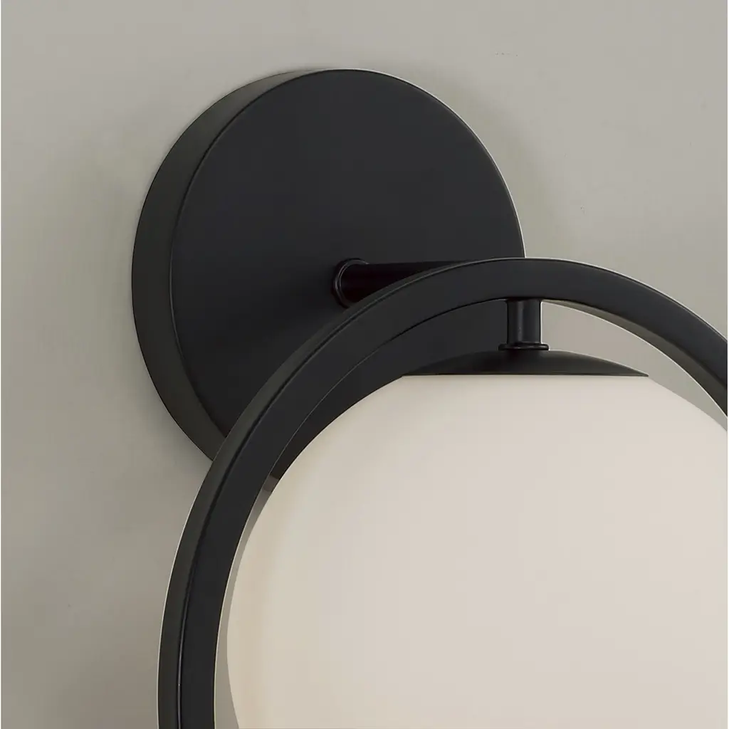 Combining sleek style with rounded contours, the Zeek Circle Sconce delivers unique modern appeal. The Soft White glass creates a sophisticated glow, while the Matte Black finish adds contrast to the open silhouette.