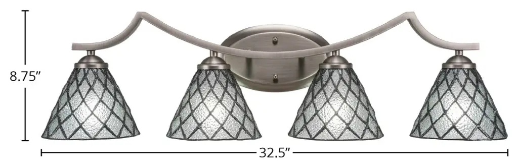 Zilo 4 Light Bath Bar, Graphite Finish, 7" Diamond Ice Tiffany Glass