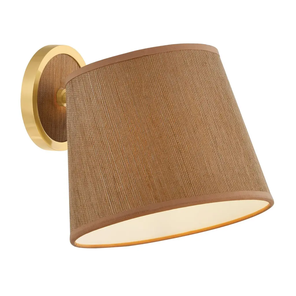 Zindra Wall Sconce, Aged Brass/natural Grasscloth