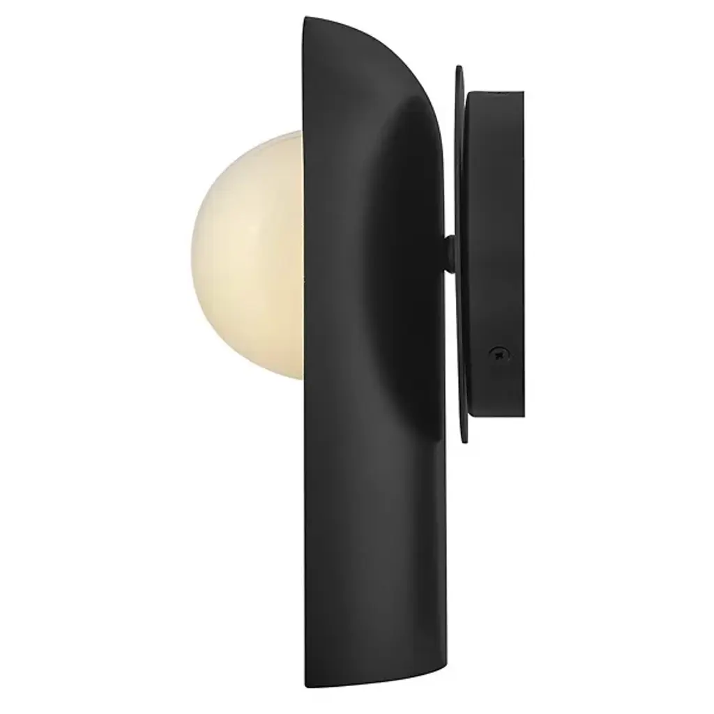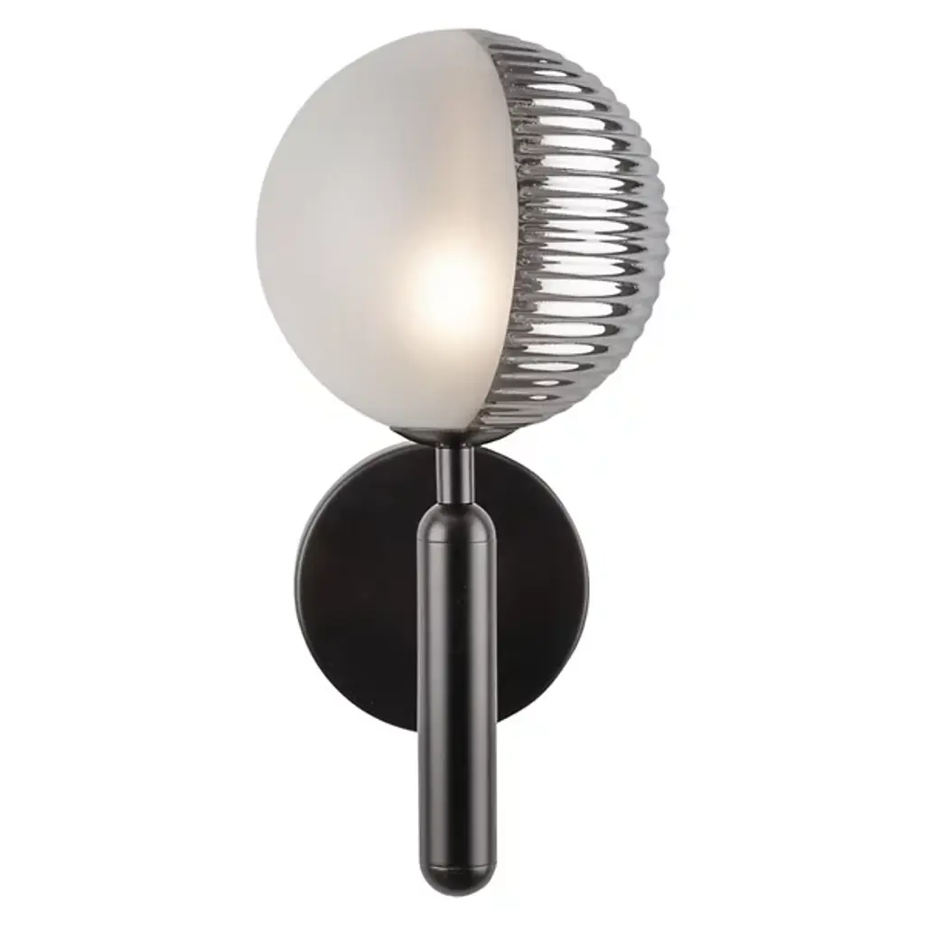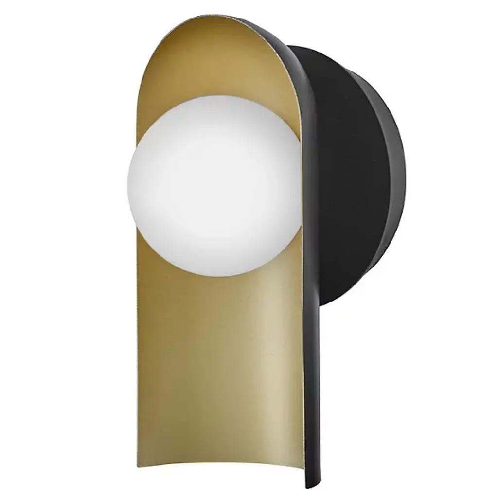 The Zuri Wall Sconce from Lark uses contrasting materials to create a dramatic wall lighting solution. The spherical glass nestles within a curved metal shade that directs light while adding architectural interest to the walls. Its versatile mounting options allow for upward or downward installation, providing flexibility for different lighting needs. The sconce’s hidden backplate hardware ensures a clean look with nothing to distract from its distinctive shape. Suitable for damp locations, this piece brings refined illumination to bathrooms, hallways, and bedrooms alike.
