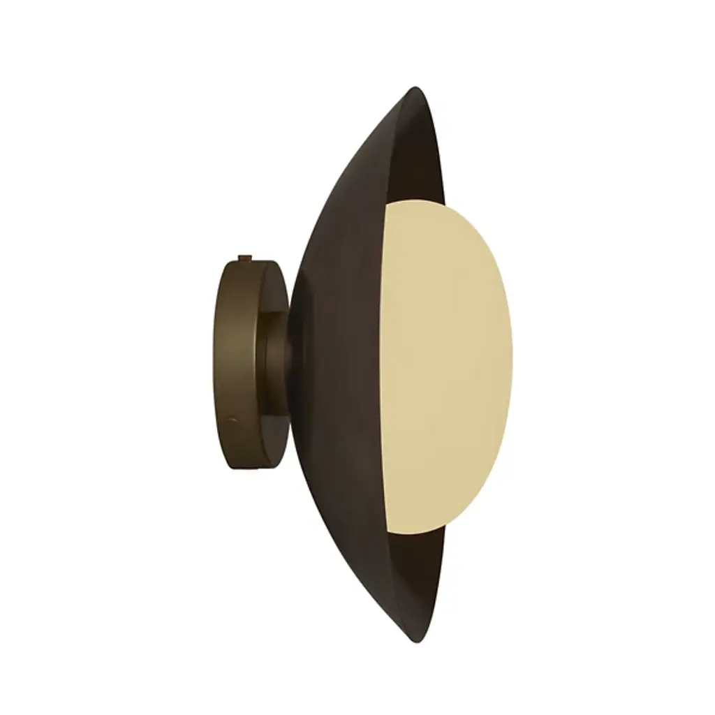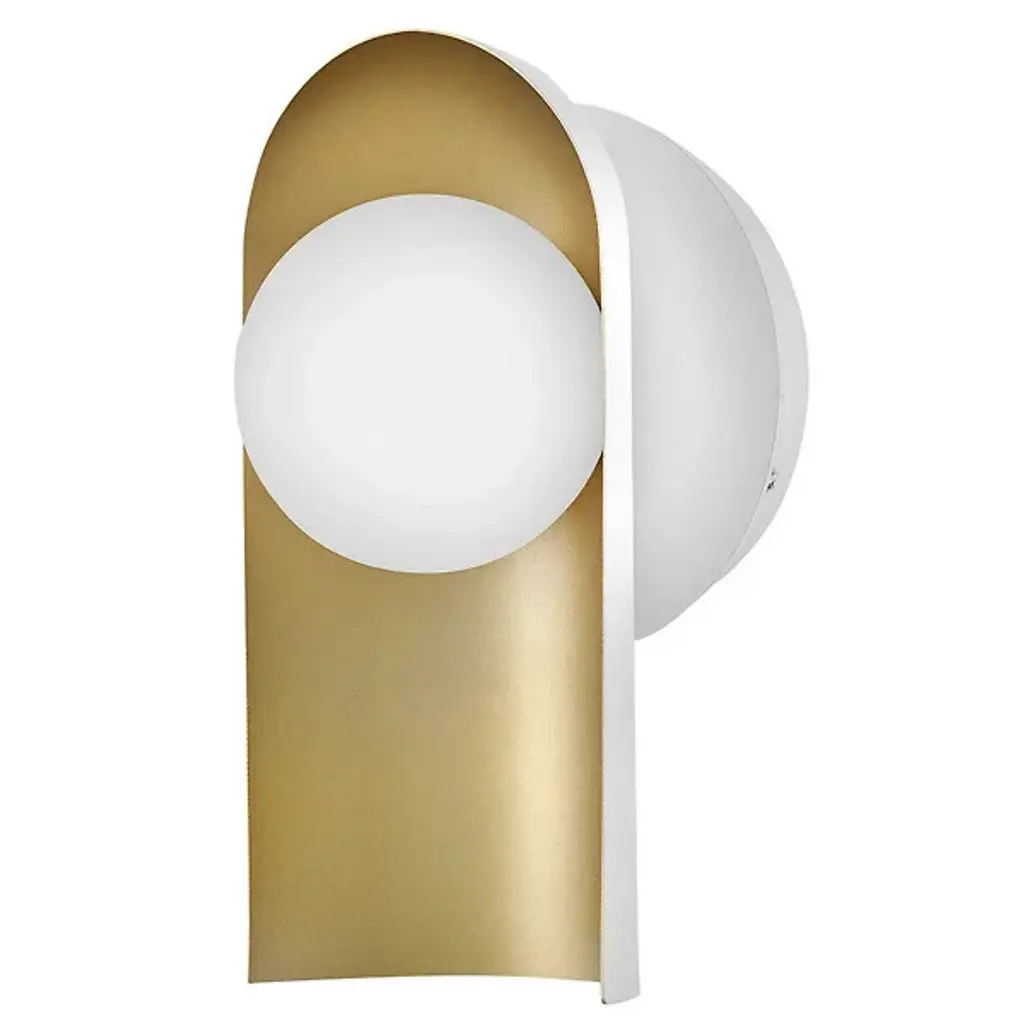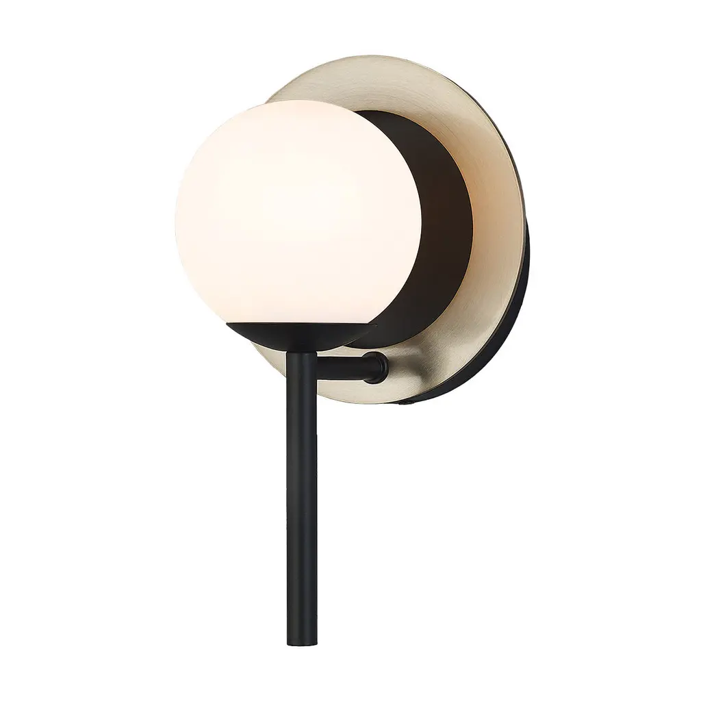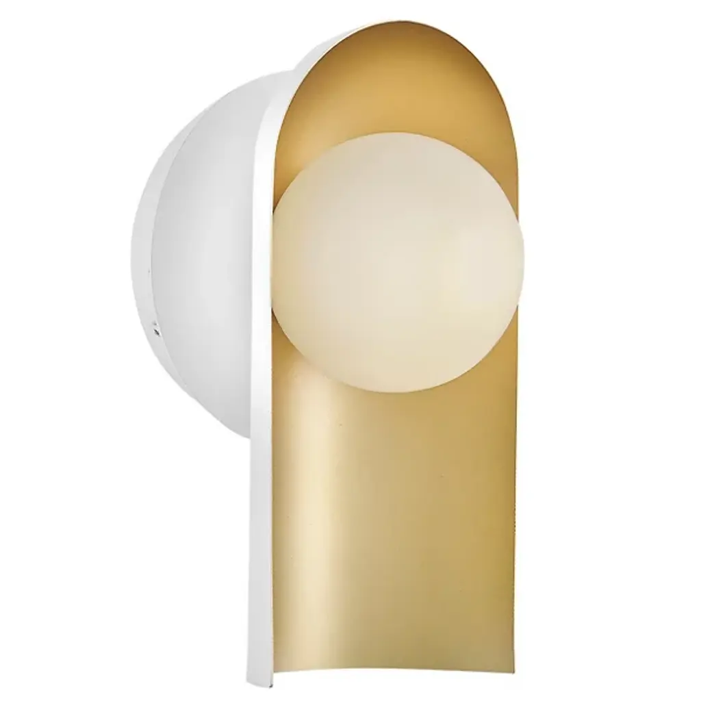 The Zuri Wall Sconce from Lark uses contrasting materials to create a dramatic wall lighting solution. The spherical glass nestles within a curved metal shade that directs light while adding architectural interest to the walls. Its versatile mounting options allow for upward or downward installation, providing flexibility for different lighting needs. The sconce’s hidden backplate hardware ensures a clean look with nothing to distract from its distinctive shape. Suitable for damp locations, this piece brings refined illumination to bathrooms, hallways, and bedrooms alike.