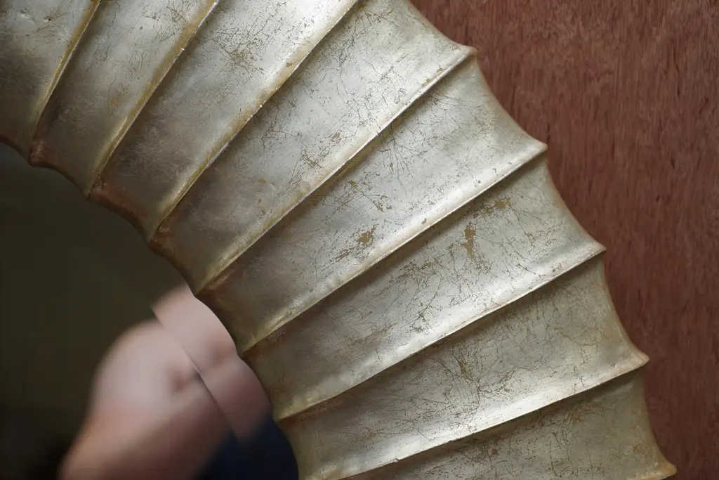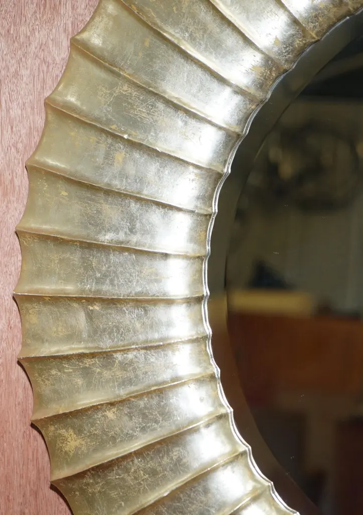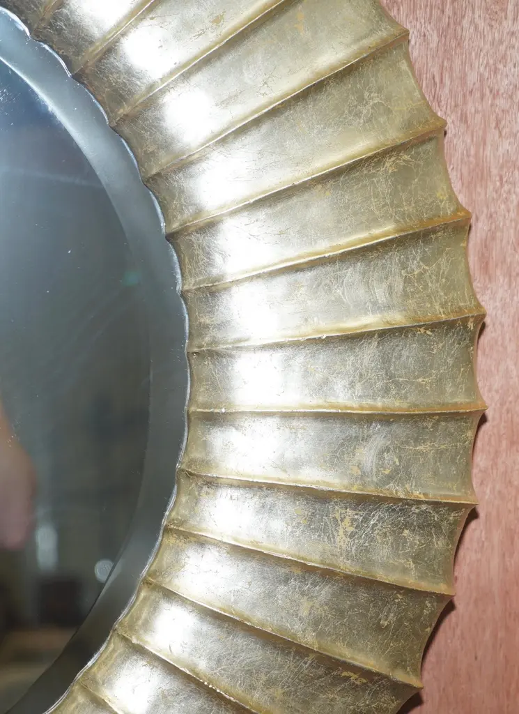 We are delighted to offer for sale 1 of 8 Original Christopher Guy RRP £2950 gold and silver leaf wood round wall mirrorsThis sale is for one mirror with the option to buy ten, I also have another two mirrors in a different style listed under my other itemsThis is absolutely sublime, the frame is hand crafted from solid hardwood, beautifully sculpted and finished with real 24-carat gold leaf and pure silver leaf, the affect is really very sophisticated and special. The glass plate is thick with a wide bevel for pulling light into the centre of the frame. The mirrors all have one of two different labels on the back, I have pictured them both for you In terms of the condition there may be the off transport related patina mark but mostly its perfect, the frame has a slightly distressed crackled finish so any imperfections would naturally blend in with the overall look and feelDimensionsHeight 98.5cmWidth 98.5cmDepth 4cmPlease note all measurements are taken at the widest pointThis item is available for collection from our Wimbledon warehousesConditionPlease view the very detailed pictures as they form part of the description around conditionPlease note vintage period and original items such as leather seating will always have natural patina in the form of cracking creasing and wear, we recommend regular waxing to ensure no moisture is lost, also hand dyed leather is not recommended to sit in direct sunlight for prolonged periods of time as it will dry out and fade.