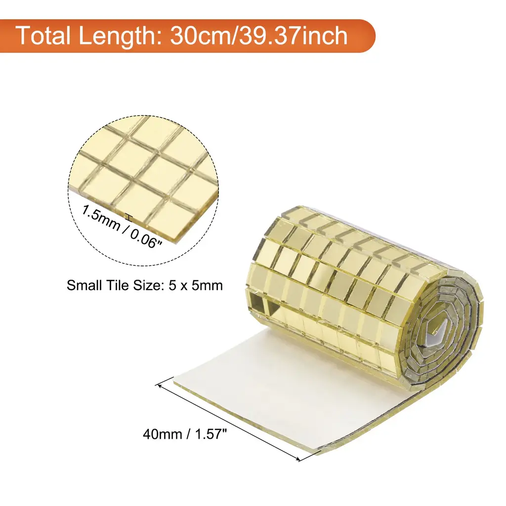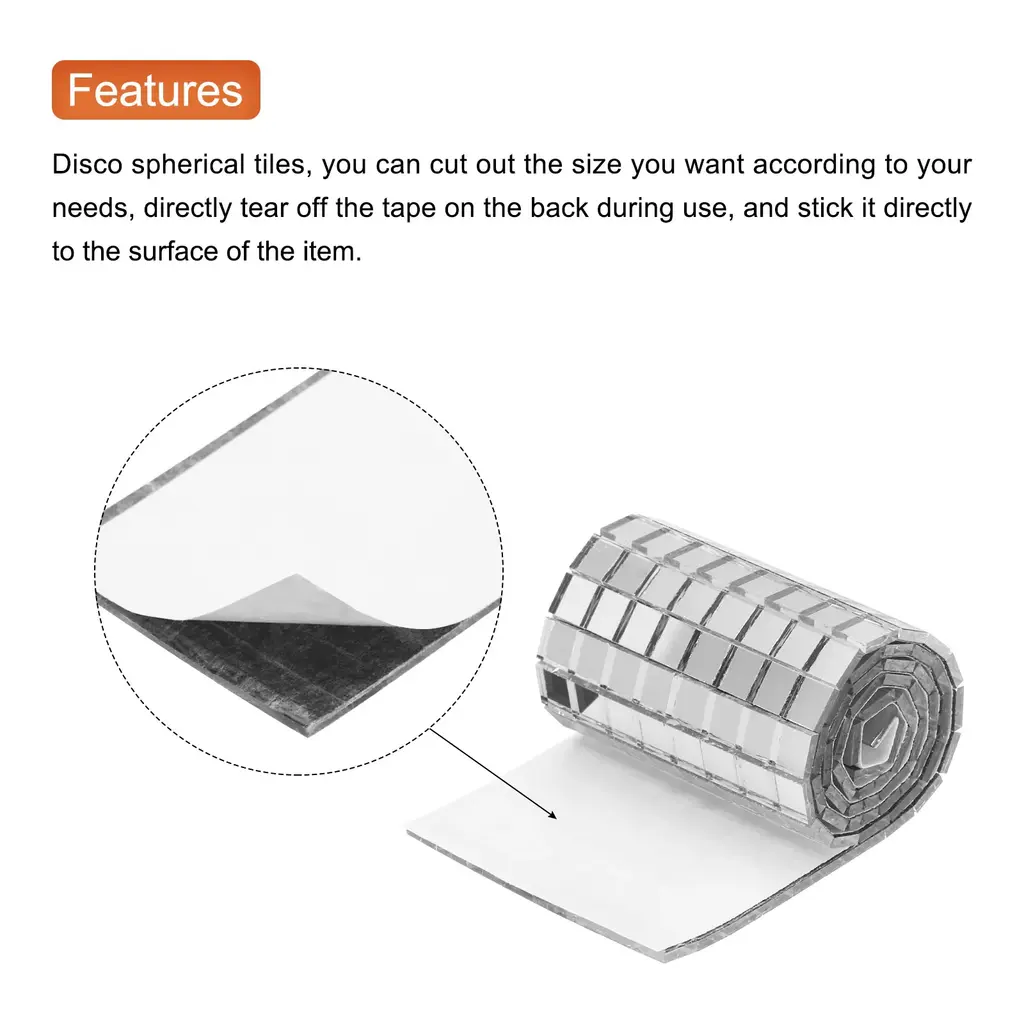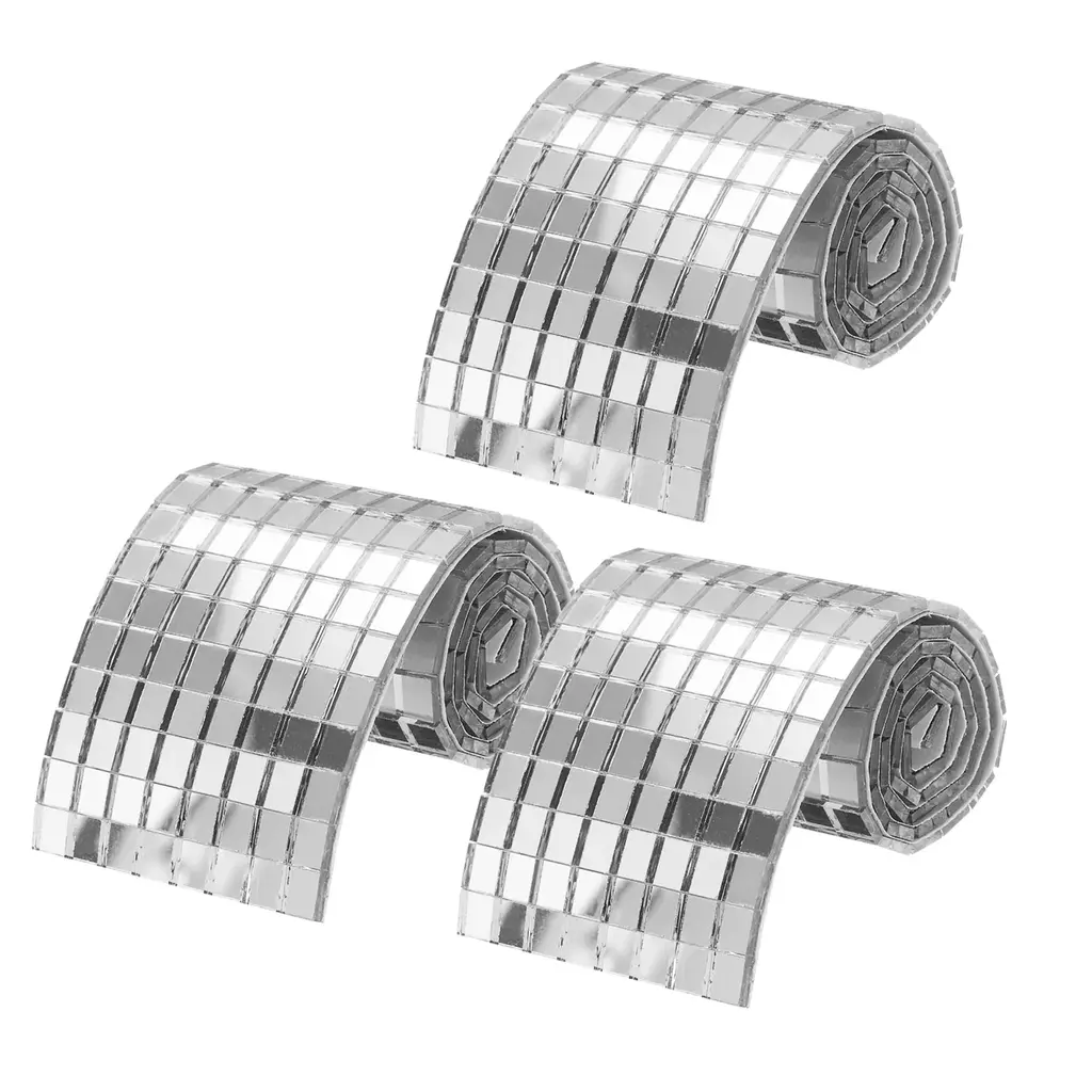 What is this?These mirror squares can be used in various applications, such as home decor, parties, weddings, clubs, 3D background walls, and stage performances.What will I get?Color: SilverMaterial: GlassSmall Tile Size: 5 x 5mm/0.2 x 0.2 inch (L*W)Total Size: 30 x 4cm/11.8 x 1.57 inch (L*W)Thickness: 1.5mm/0.06 inchIn the package of: 3 Set x Mosaic Mirror, 480pcs small tile for 1 setAre there any advantages of the product?Made of glass material, these disco ball tiles are sturdy and long-lasting. They are designed to withstand regular use and applied for multiple events or occasions.The glass mirror surface of these tiles reflects light beautifully, creating enchanting patterns and reflection around the room.How to use it?1. Clean the surface where you want to place it and keep it dry;2. Peeling off the protective film from the self-adhesive side of each tile;3. Press each tile firmly onto the desired surface;4. Apply even pressure to ensure proper adhesion;5. Avoid touching or disturbing the mirror stickers during the time when waiting for adhesive.What should I notice?Consider grouting the gaps between tiles for a more finished and professional appearance.Please wear gloves during use to prevent cuts from edges.