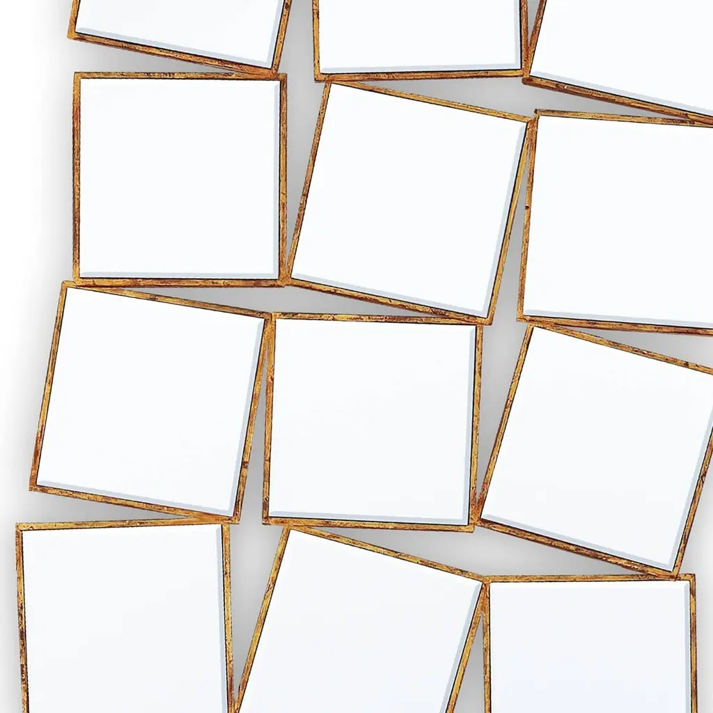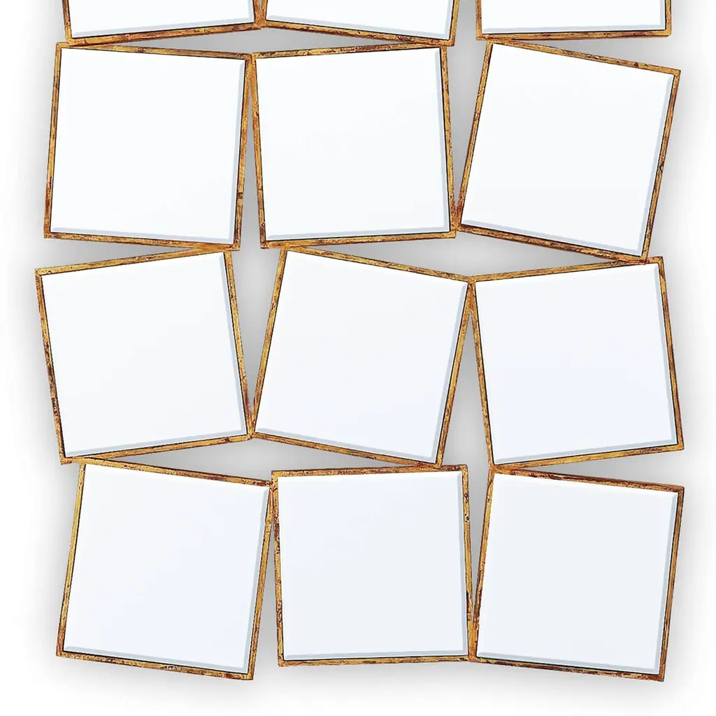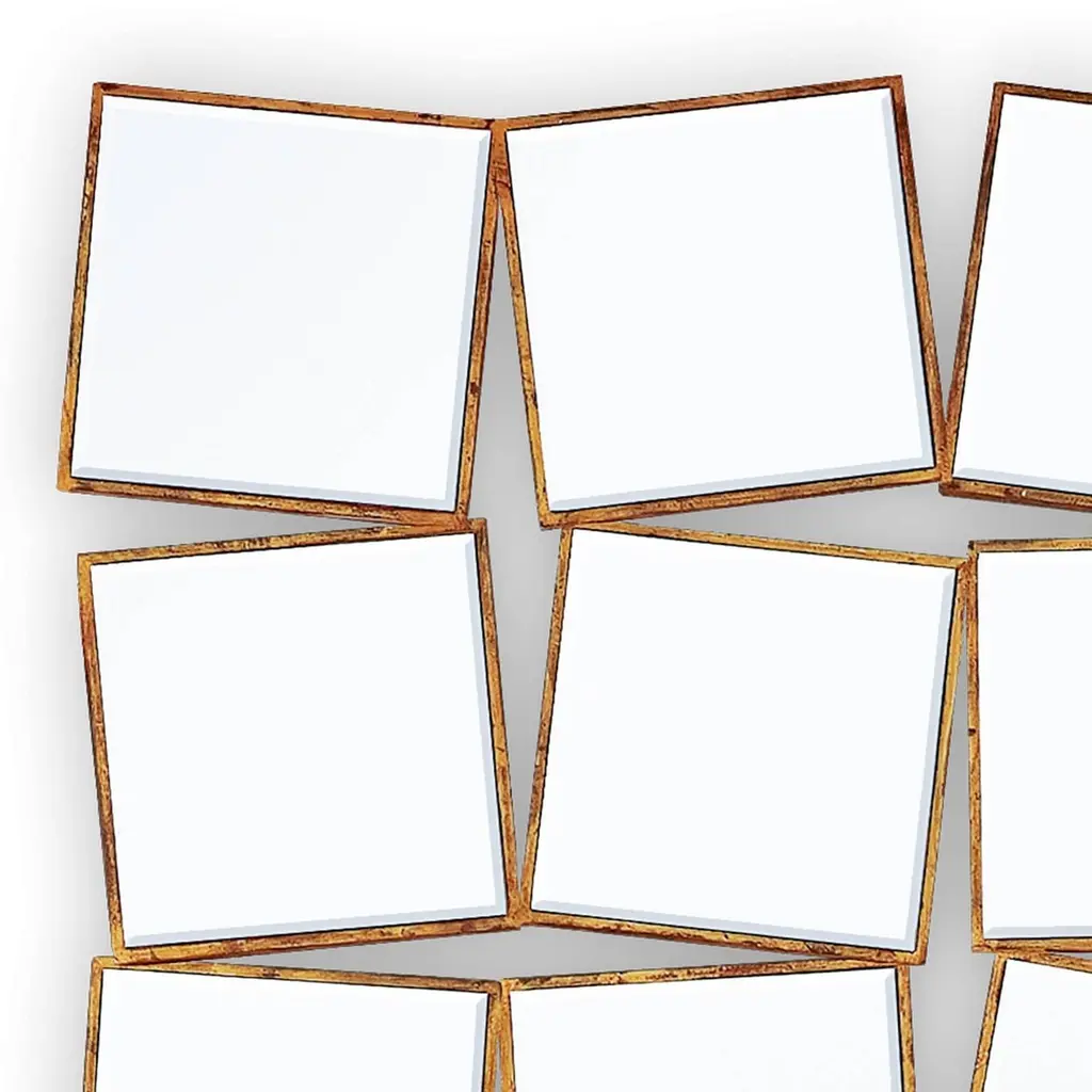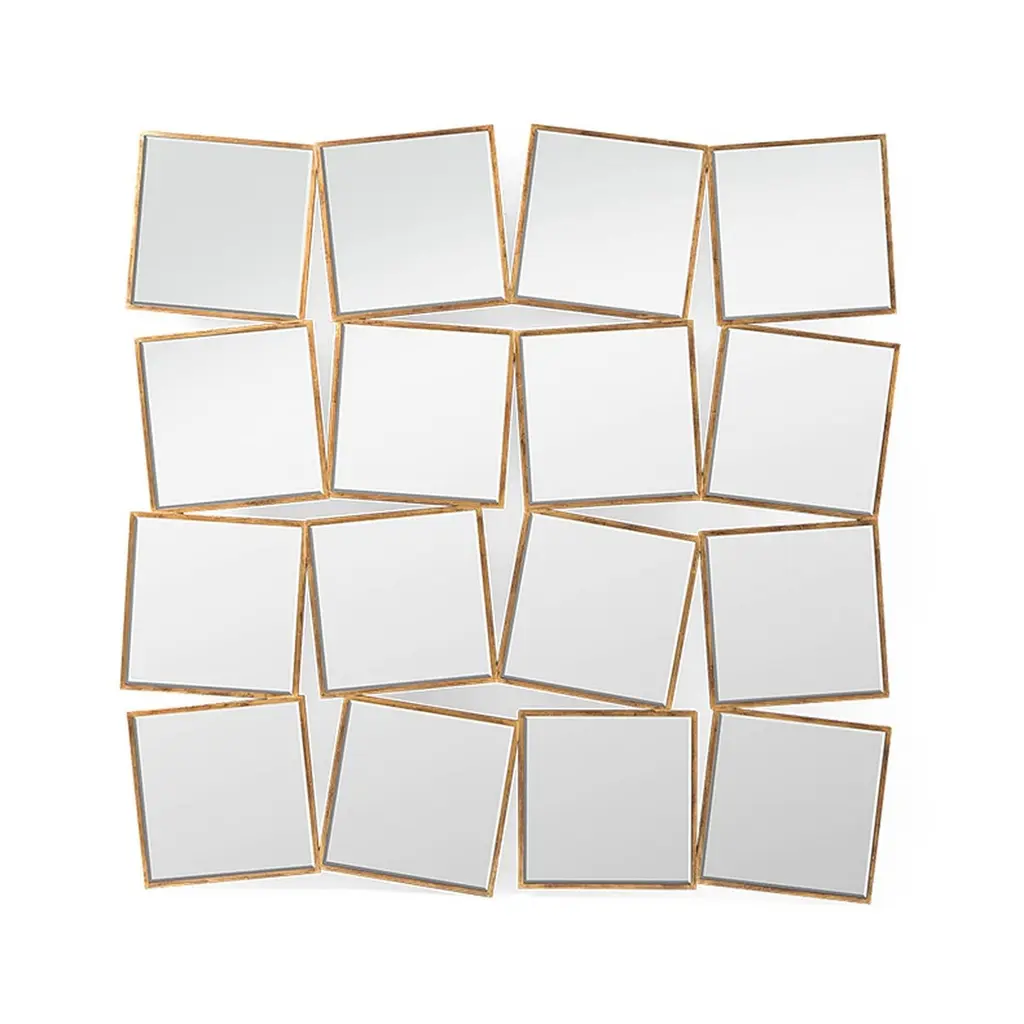 15th Squares Mirror With Solid Wood Frame With Gold Painting