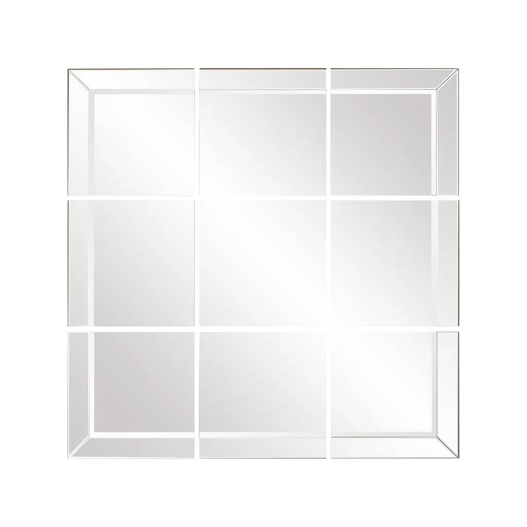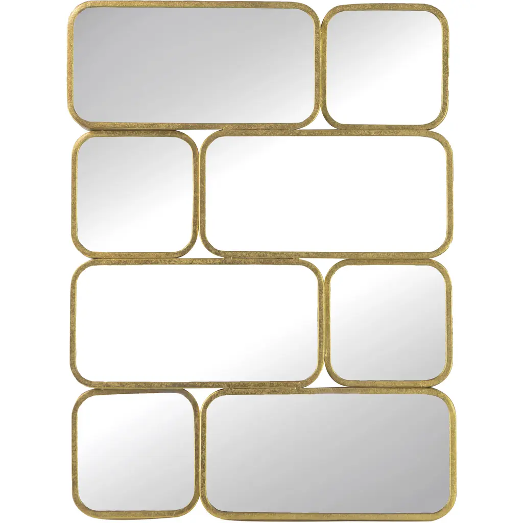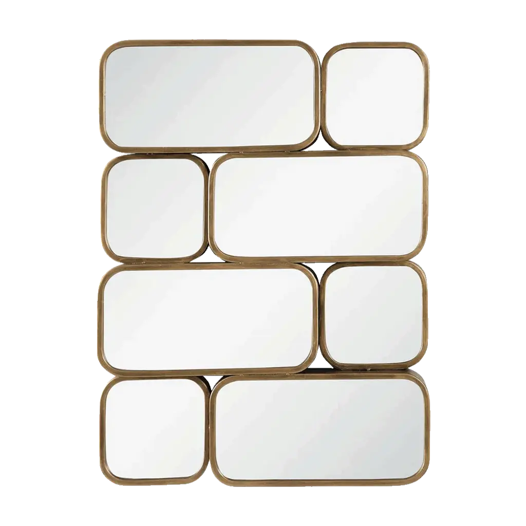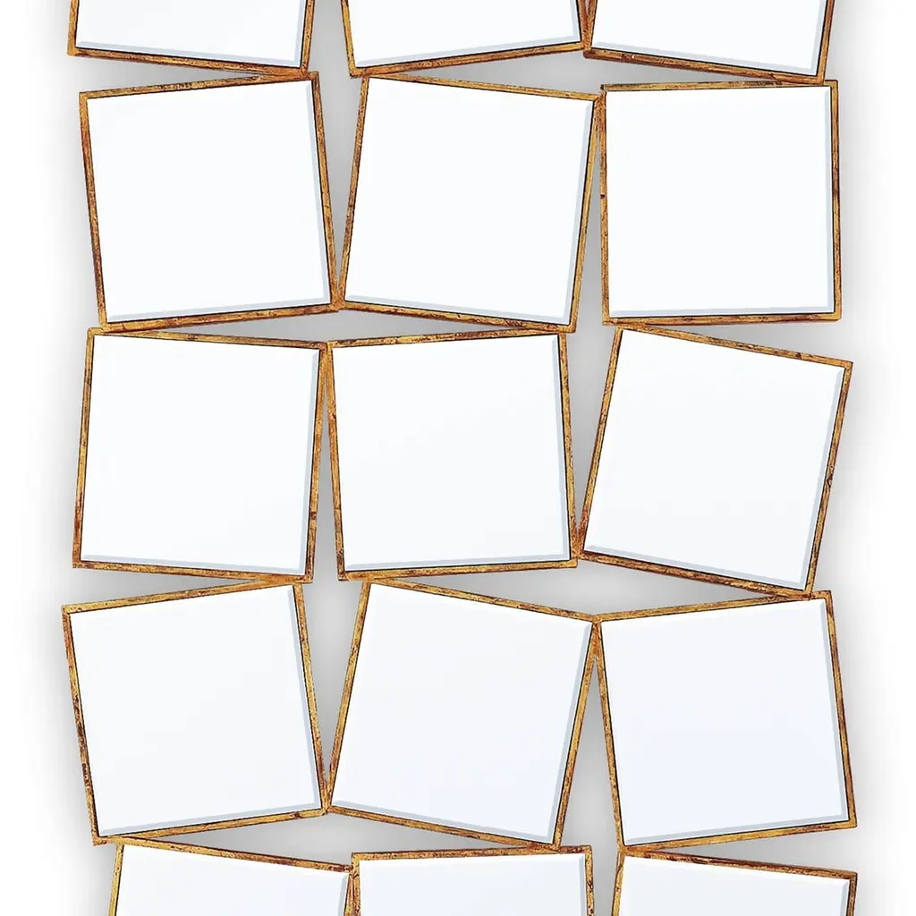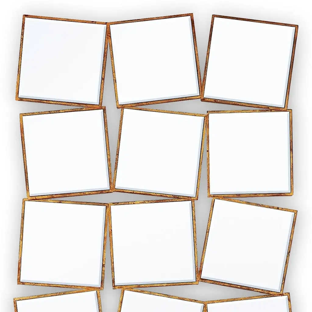 15th Squares Mirror With Solid Wood Frame With Gold Painting