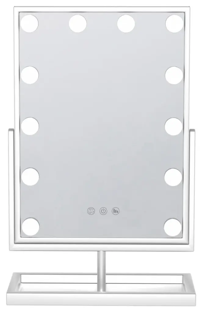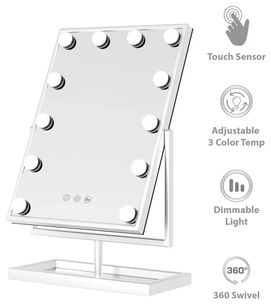 15x17" Hollywood Tri-Color Mirror, 12 Bulbs, White