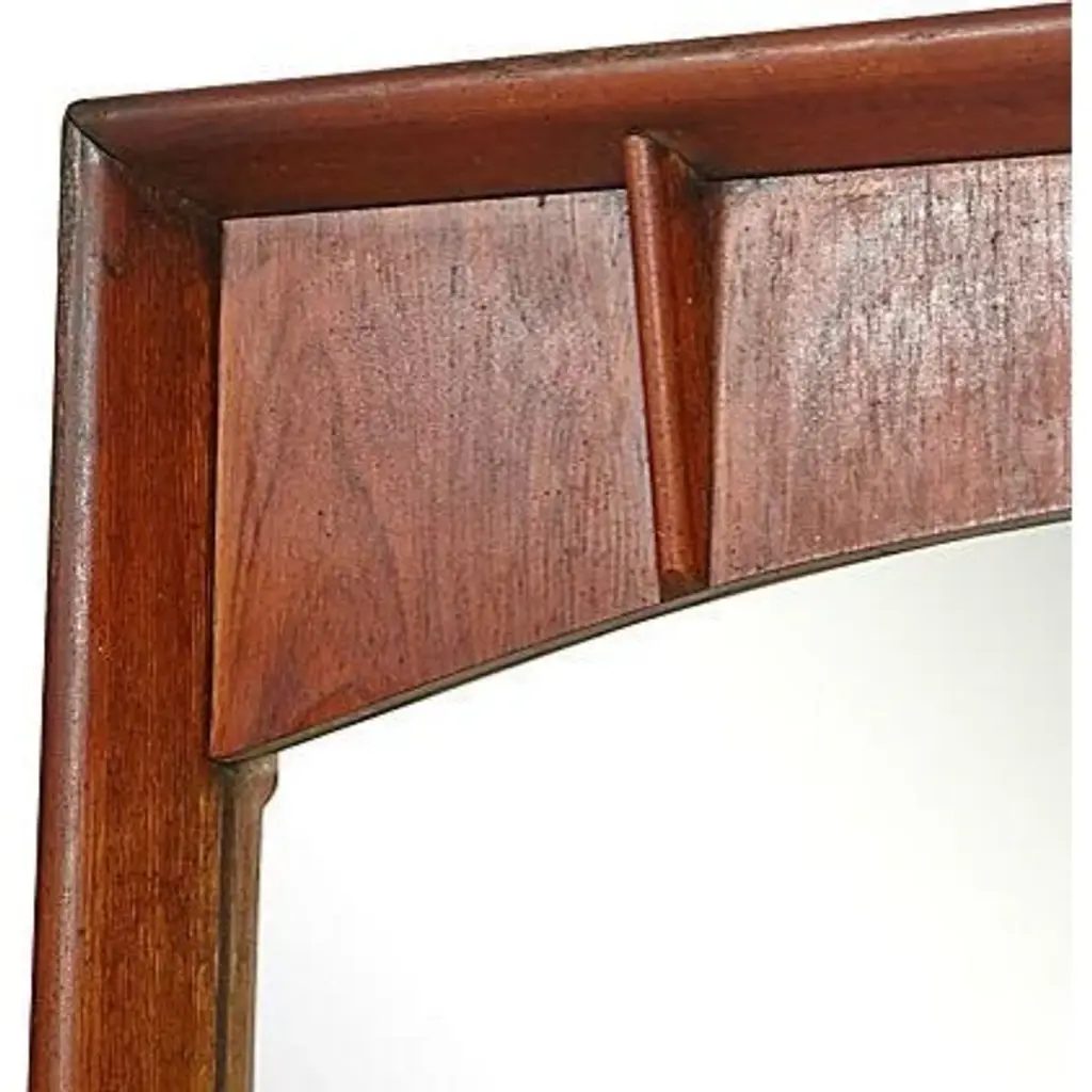 1960s walnut and pecan wood sculpted mirror. Hardware not included. No maker''s mark.Measures: 31" L x 2.5" W x 47.75" H
