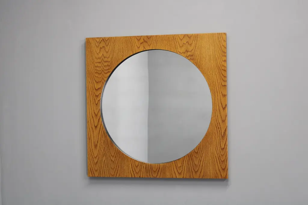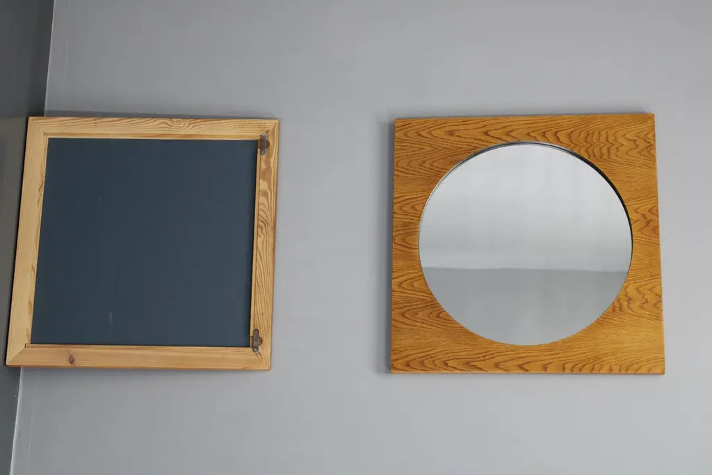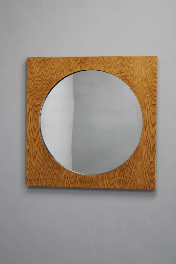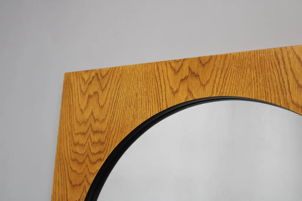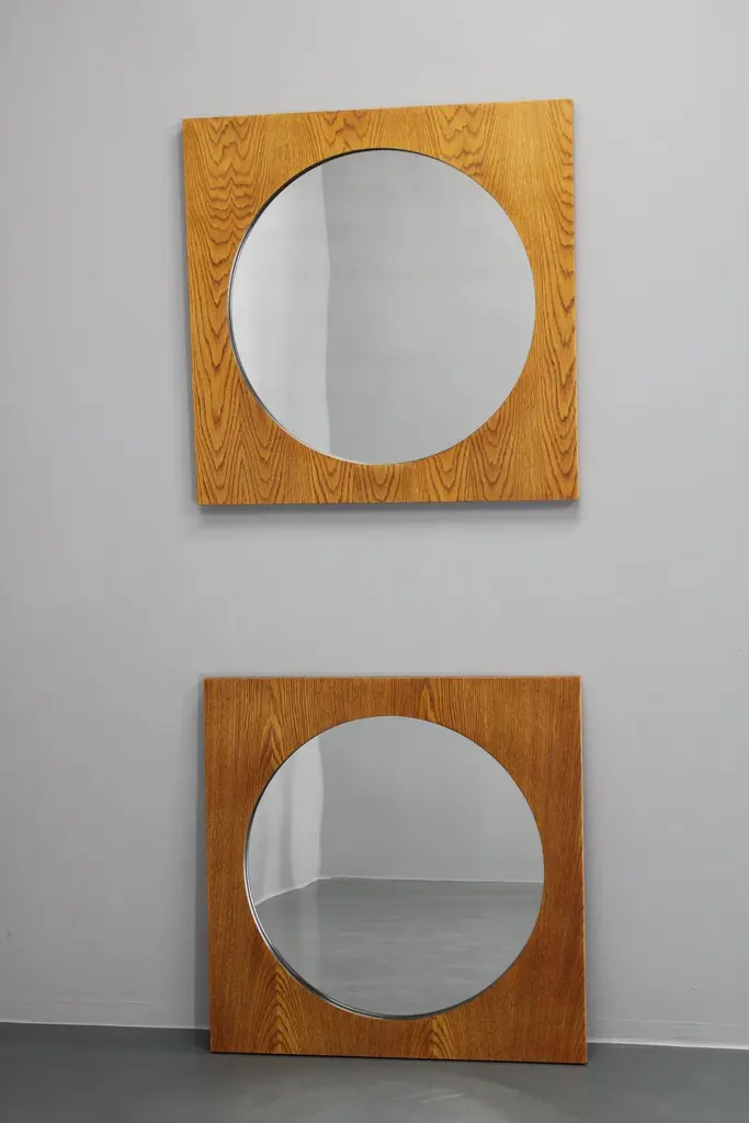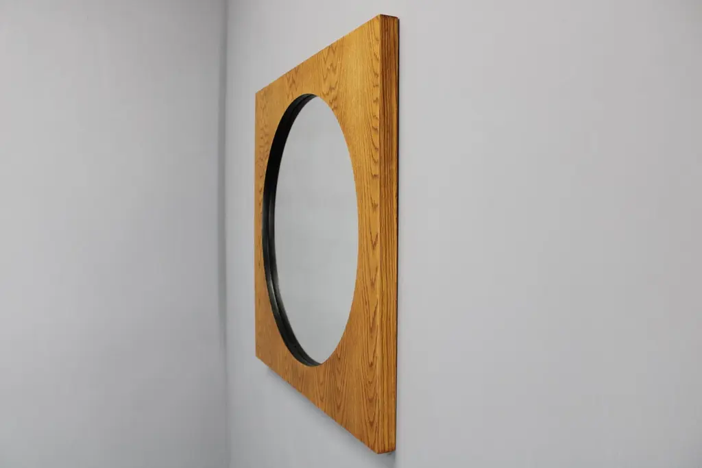 1970s Pair Of Oak Large Square Mirrors, Czechoslovakia