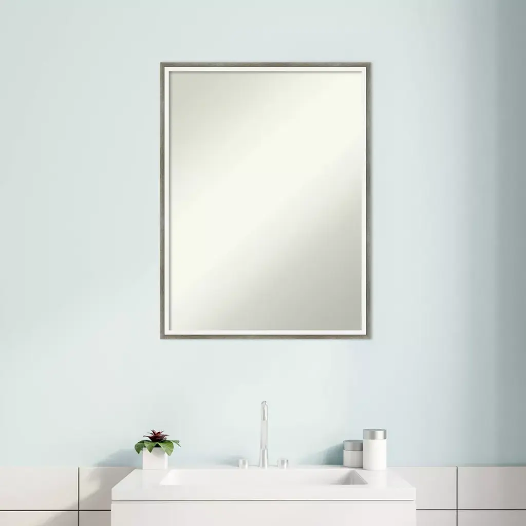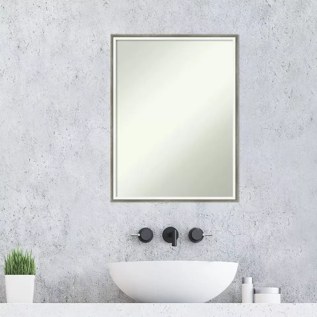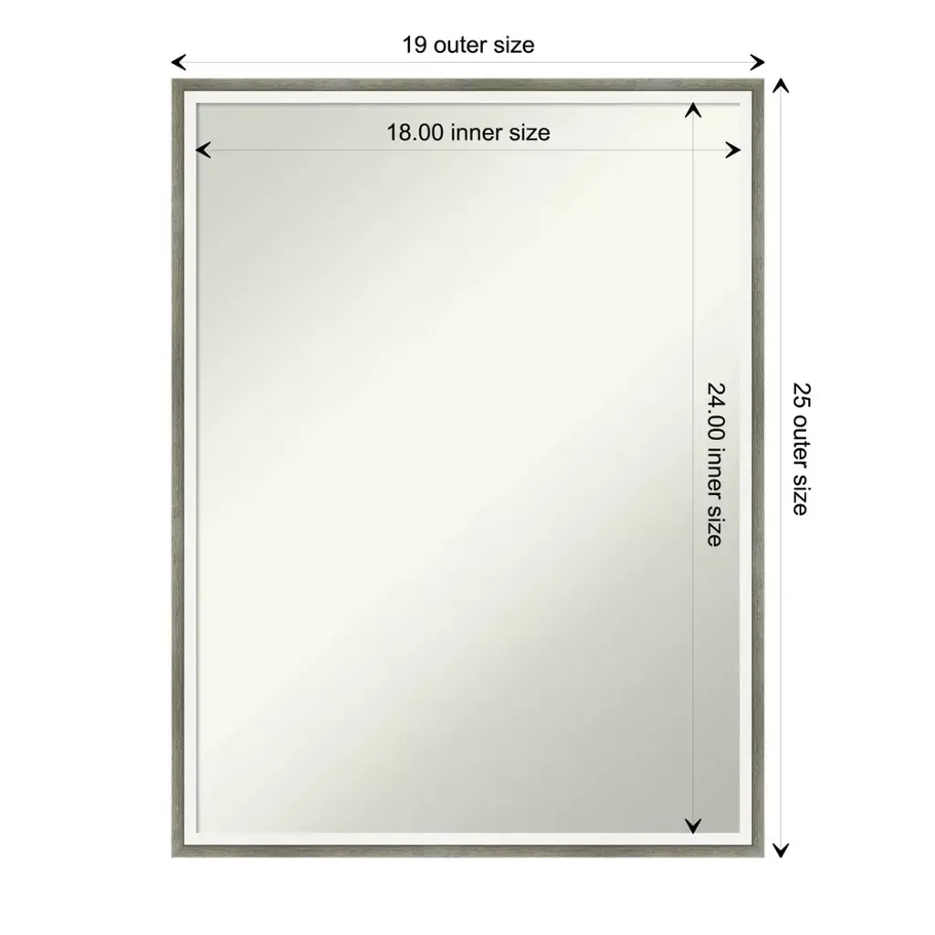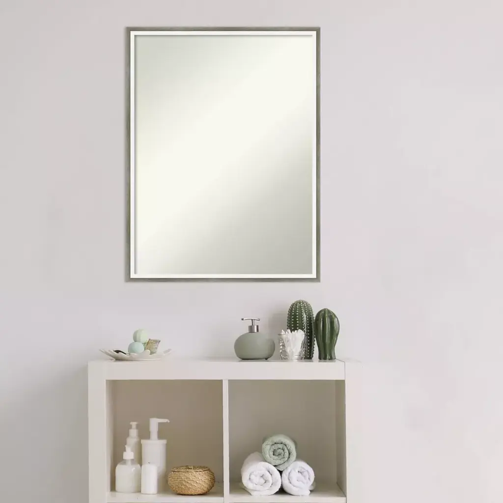 19"x25" Non-beveled Lucie Wood Bathroom Wall Mirror Silver - Amanti Art: Modern Rectangle, Wall Mount, Includes Hardware