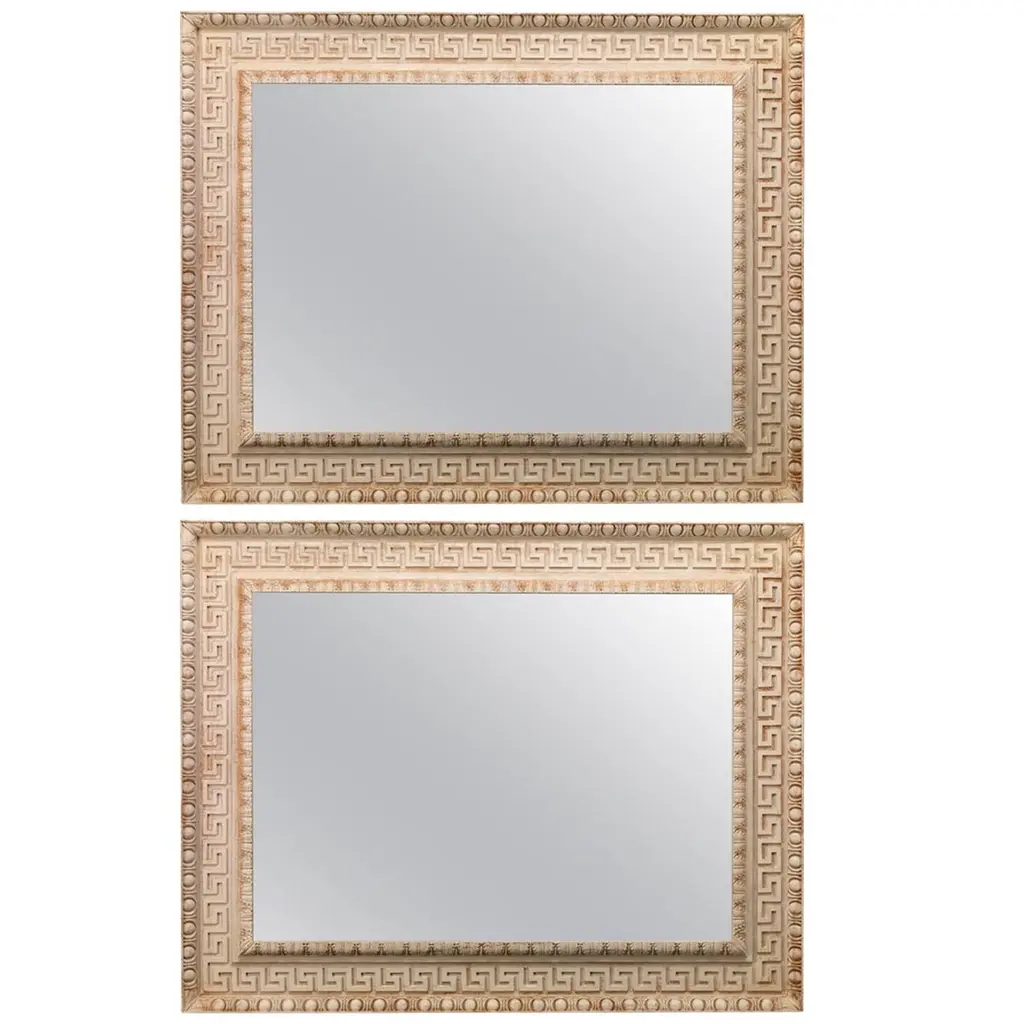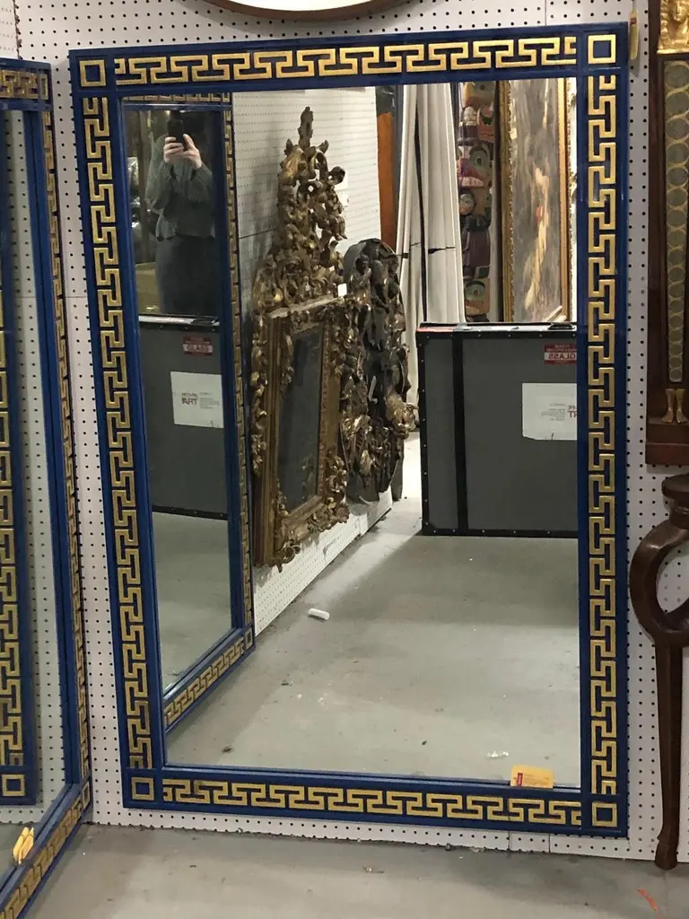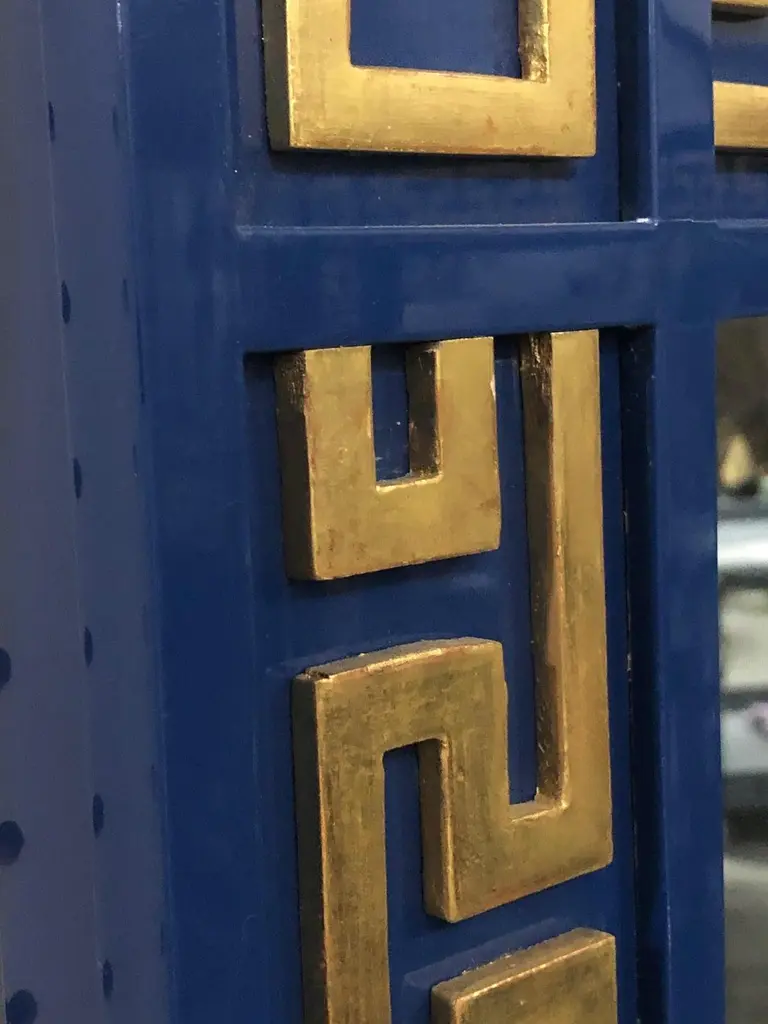 2 Italian Neoclassic-style (21st Century) blue painted lacquer wall mirrors with a parcel gilt Greek key design frame. (CAN BE MADE IN CUSTOM SIZE AND COLOR) (PRICED EACH)