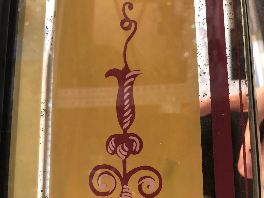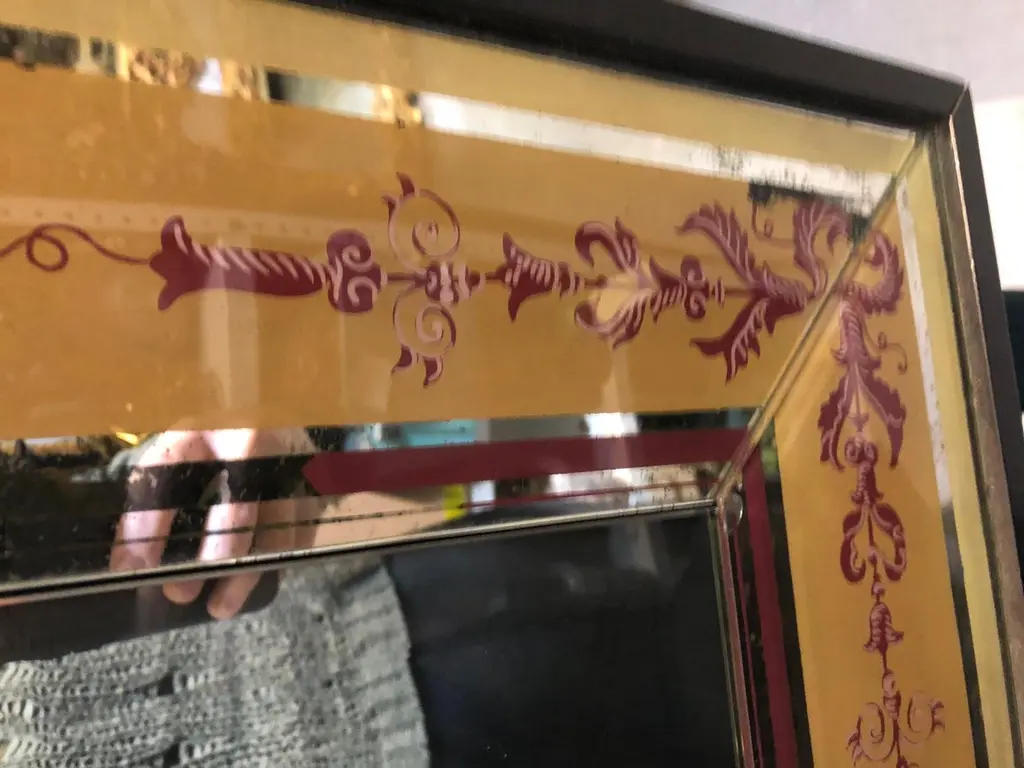 2 Italian Mid-Century Beige Floral And Scroll Eglomise Wall Mirrors