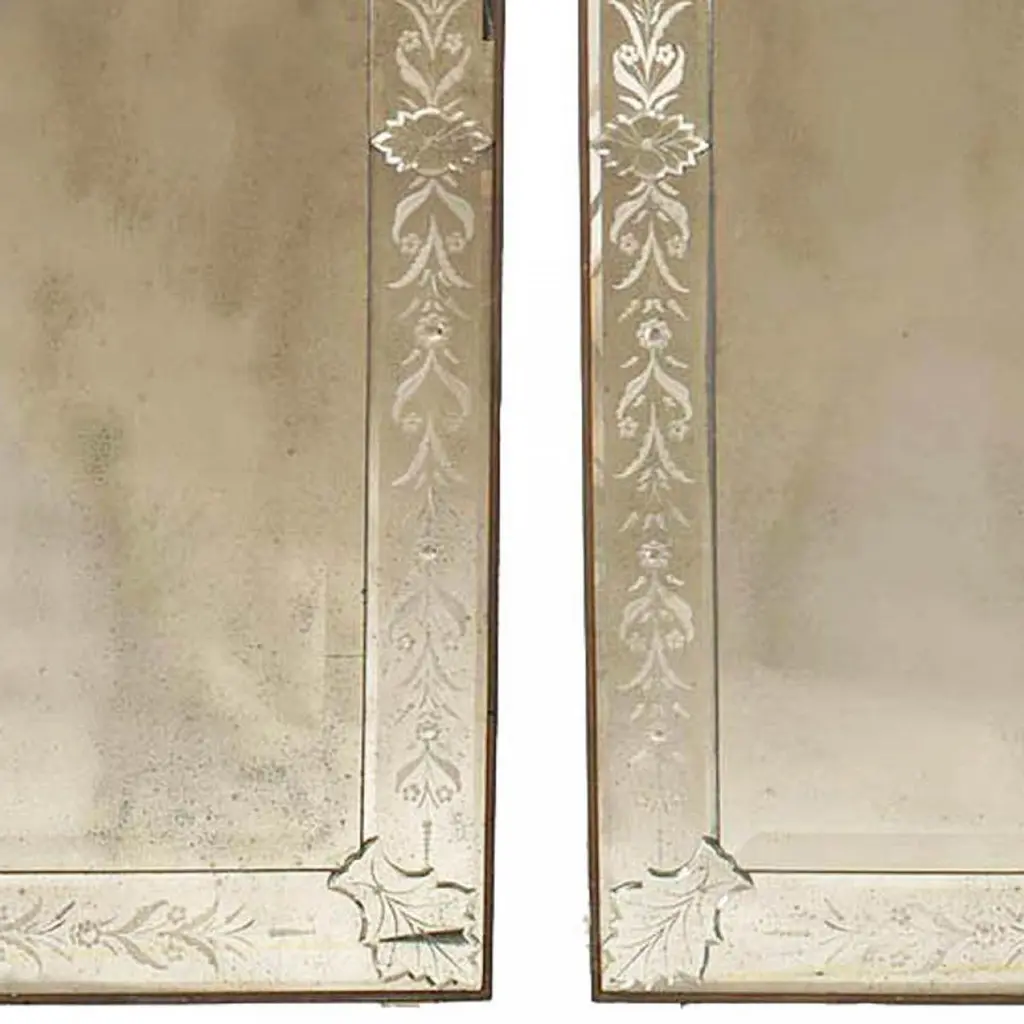 2 Ongaro E Fuga Italian Venetian Murano Etched Floral Design Wall Mirrors
