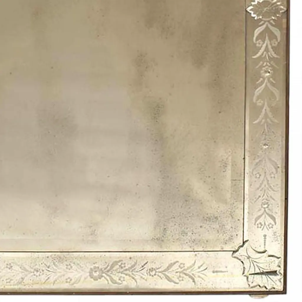 2 Italian Venetian Murano (20th Century) rectangular wall mirrors with beveled and etched floral and scroll design border and beveled central mirror. (ONGARO E FUGA) (PRICED EACH)