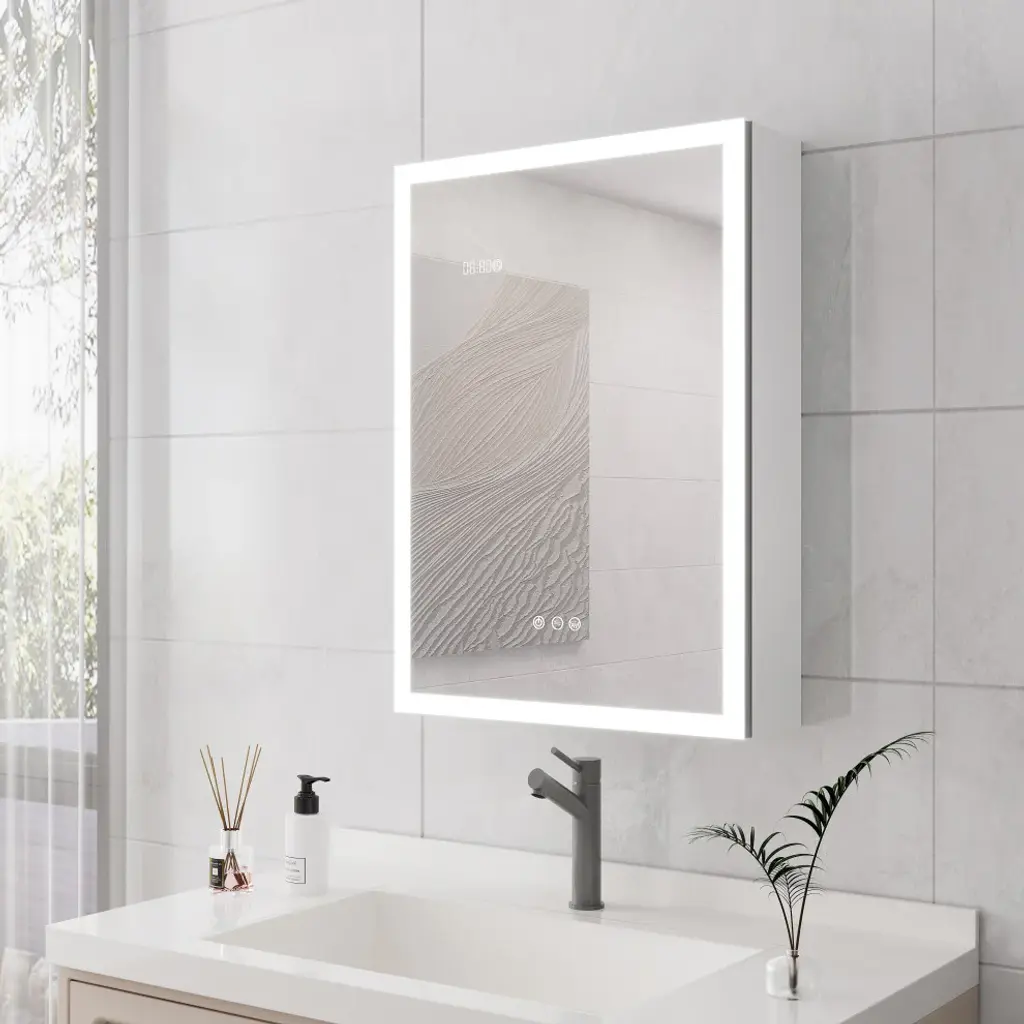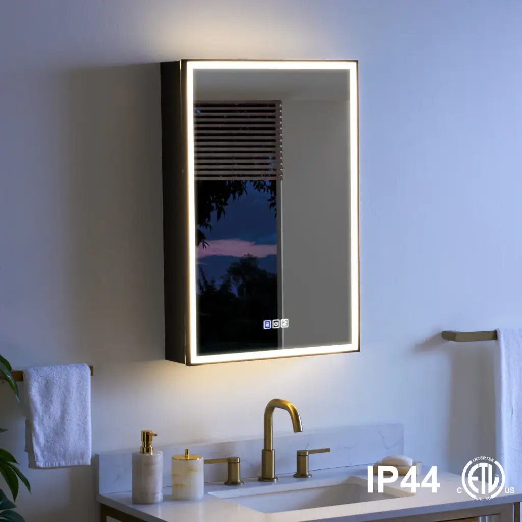 This surface mount medicine cabinet provides essential storage without sacrificing square footage. Perfect for the bathroom that"™s a bit short on space. Perfect for bathrooms that are a bit small. You can install it over the sink, next to the bathtub, or anywhere else. The mirror frame is made from aluminum alloy material, which is corrosion-resistant. You don''t have to worry about the stability of the structure. There are three touch switches for this cabinet, which control the main light, the anti-fog function respectively, the brightness adjustment, and the color temperature adjustment of the lighting. The independent control function allows users to know how to use it easily. An even mix of classic and contemporary elements, this clean-lined medicine cabinet lets you tuck away items in style.1.The mirror frame is made from aluminum alloy material, which is corrosion-resistant. You don''t have to worry about the stability of the structure.2.It is equipped with a three button Touch switch to control the main light and anti-fog film and adjust the light+color temperature, 3-color temperature, dimmable led with a long press to adjust the brightness. A lighted medicine cabinet can adjust the brightness from dark to bright according to your preference.3.This medicine cabinet with reasonable shelves to fully maximize storage space and let your bathroom and other scenarios be organized and clean.4.A bathroom medicine cabinet with a mirror provides uniform and optimal bright lighting, which can eliminate harsh shadows and hot spots when you are shaving, brushing your teeth, or putting on makeup.5.An even mix of classic and contemporary elements, this clean-lined medicine cabinet lets you tuck away items in style.6.The hinge is designed to slowly open and close, providing safety and care for you.
