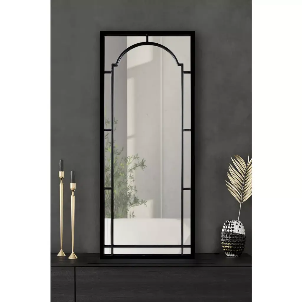 20" X 48" Lyla Metal Framed Arch Decorative Wall Mirror Black - Kate & Laurel: Chic Windowpane Design, Easy Wall Mount