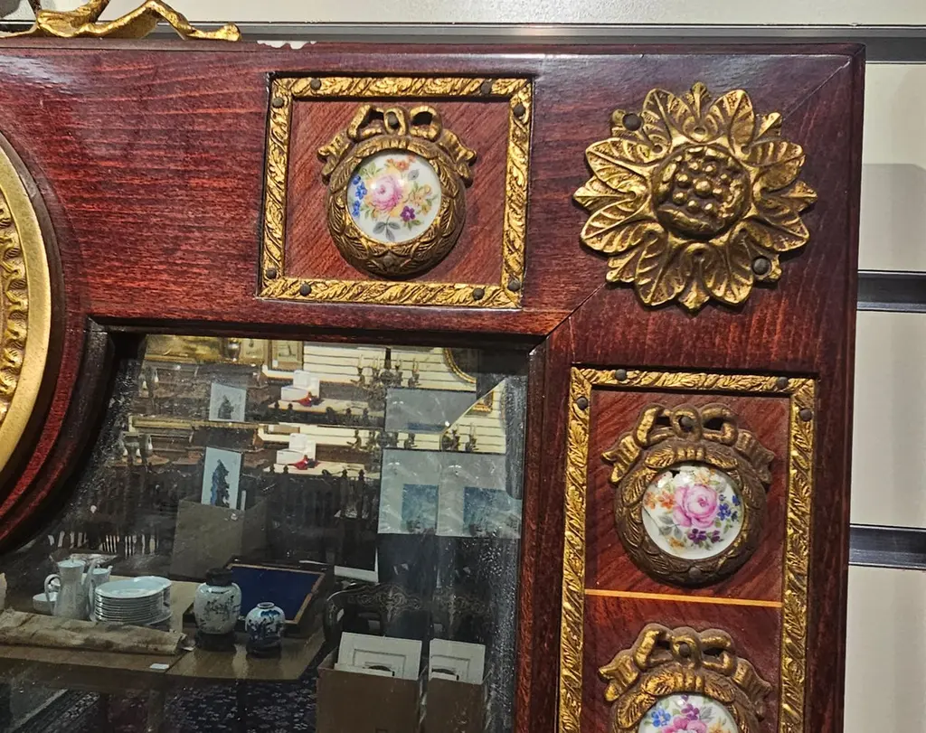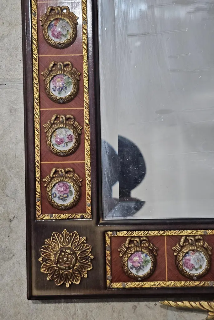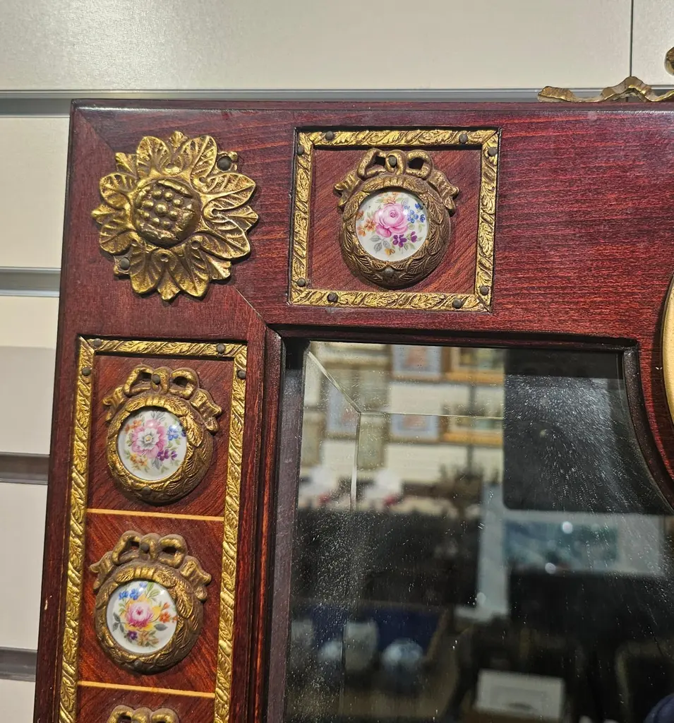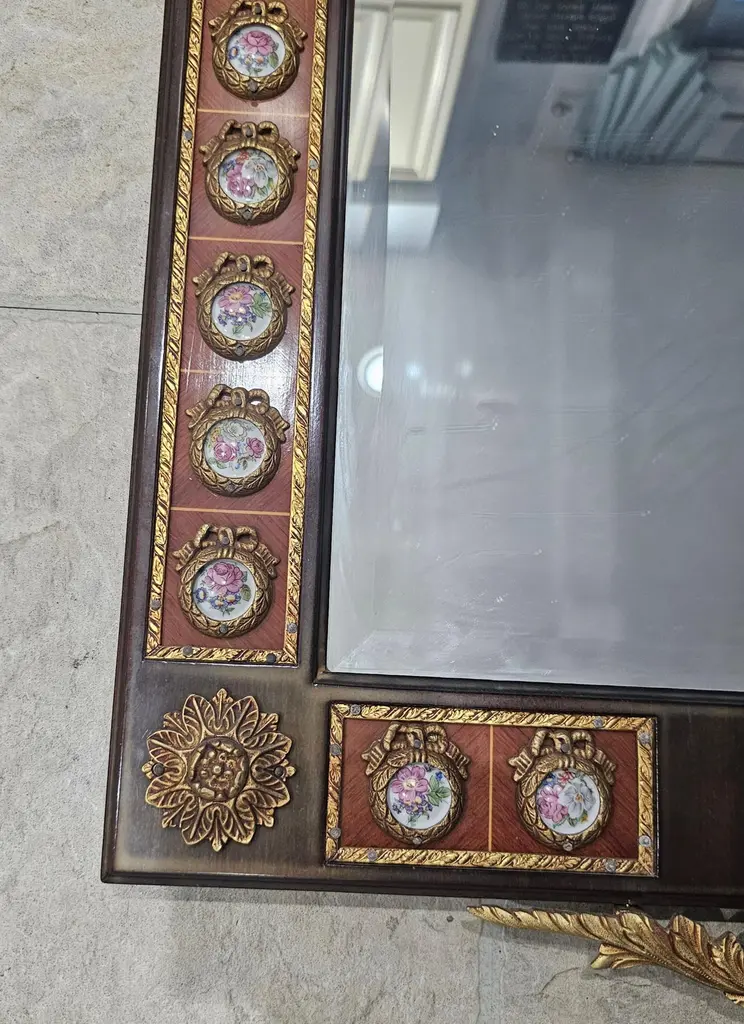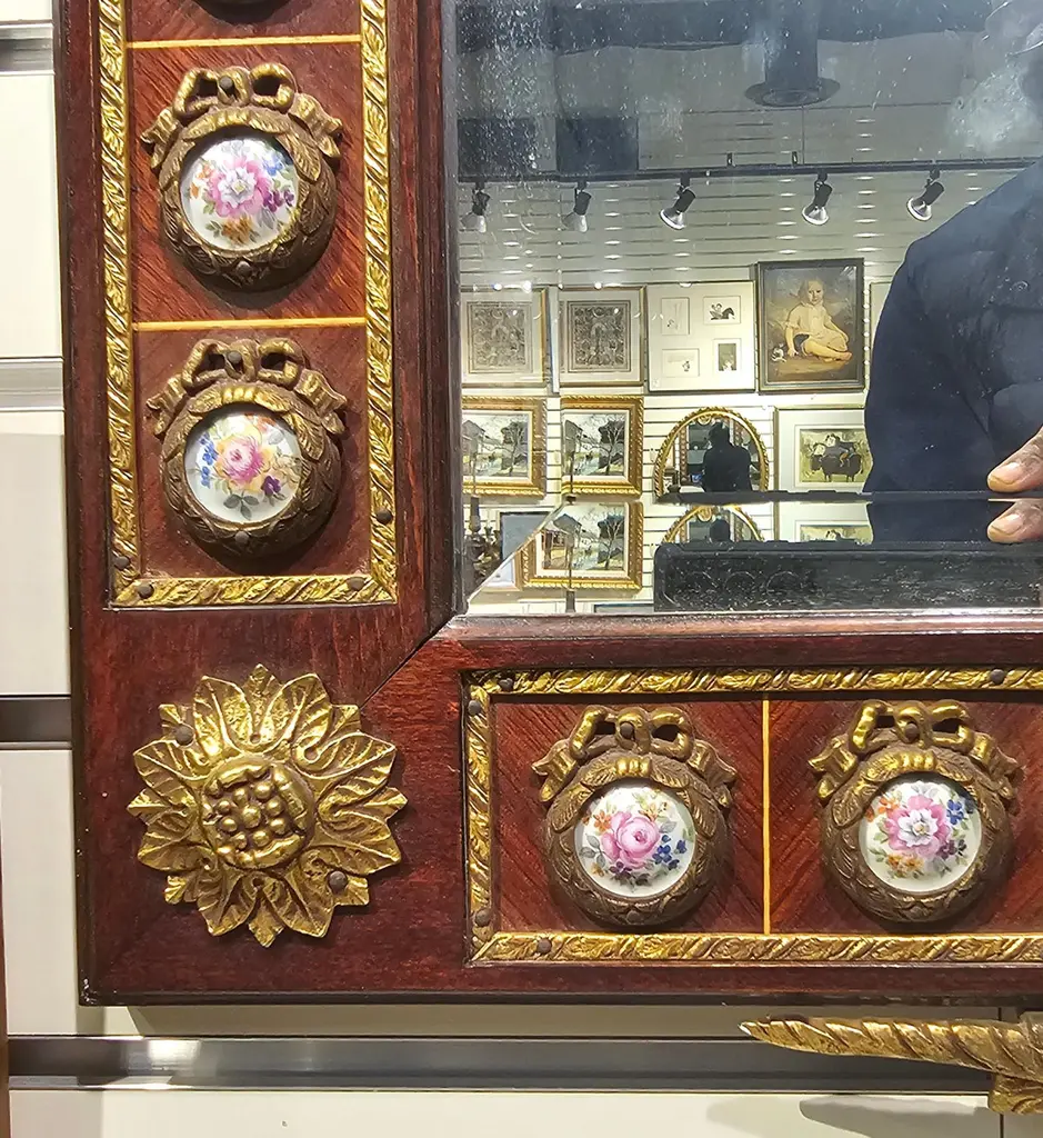20th Century Mariner Louis Xv Marquetry Ormolu & Porcelain Inset Mirrors, A Pair