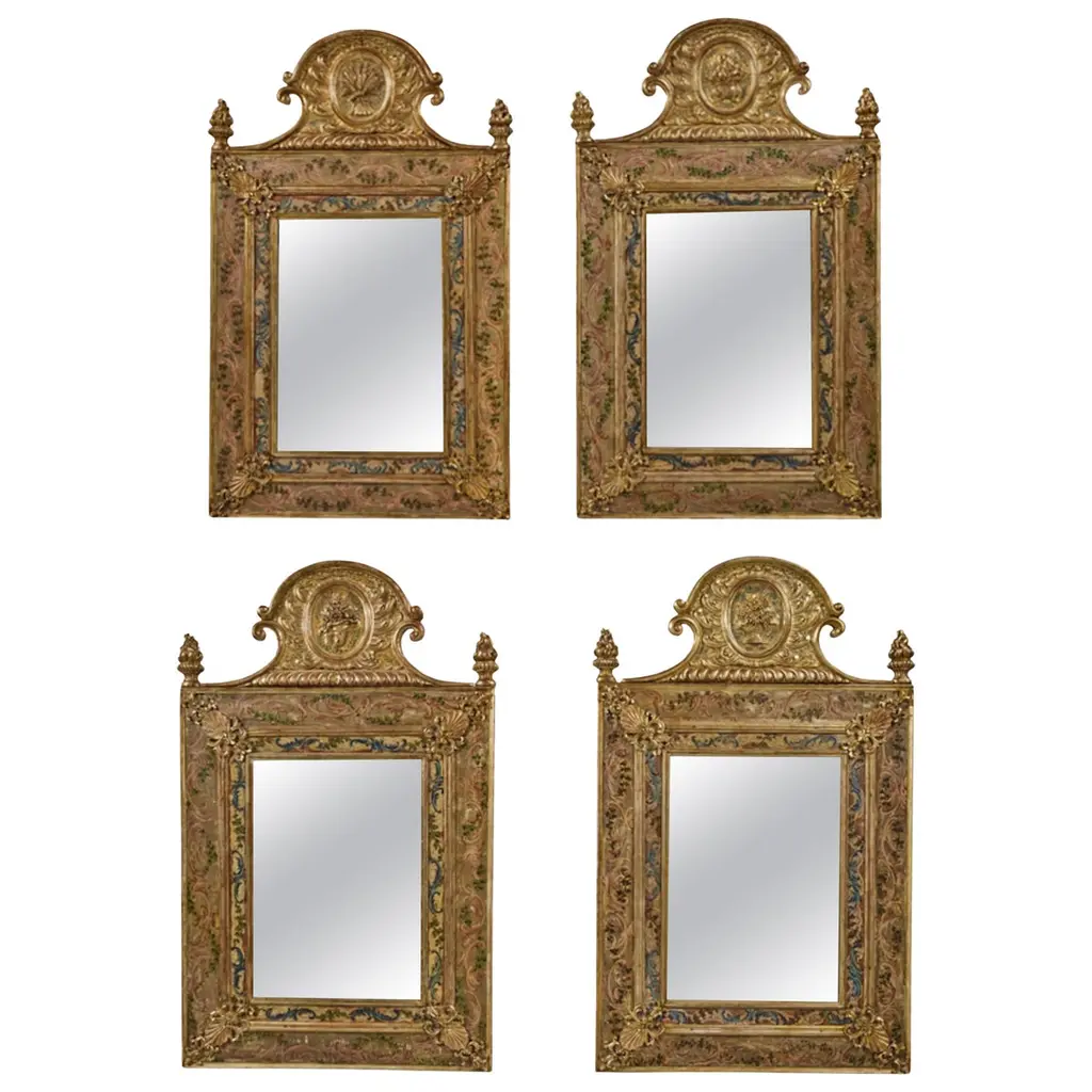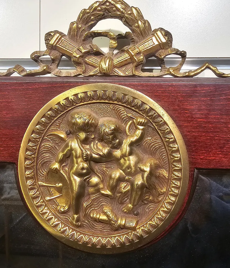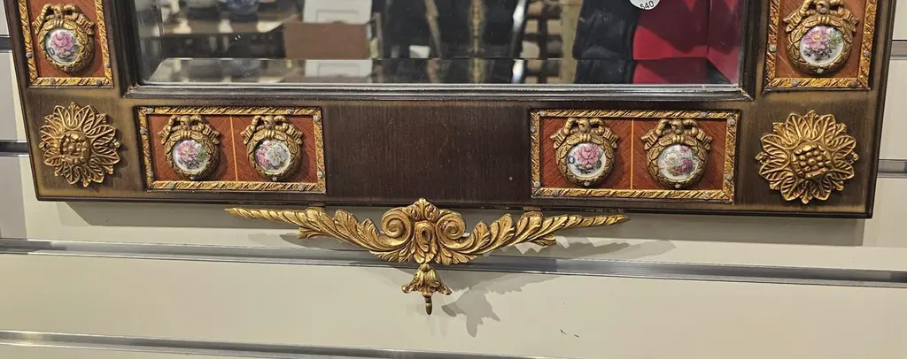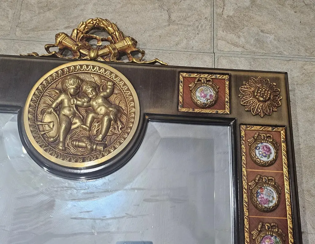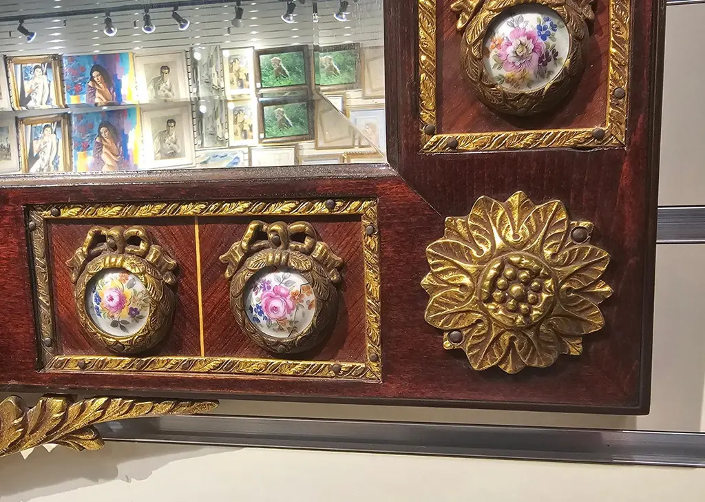 20th Century Mariner Louis Xv Marquetry Ormolu & Porcelain Inset Mirrors, A Pair