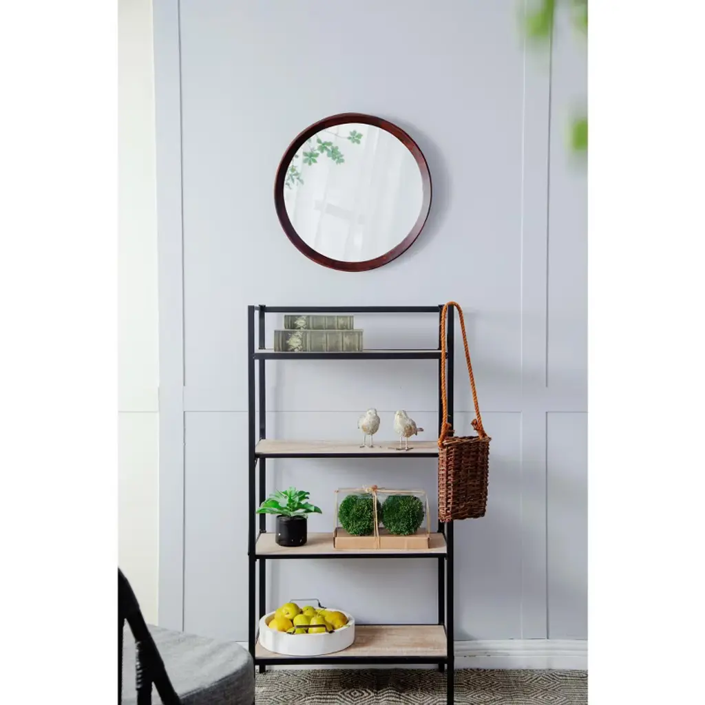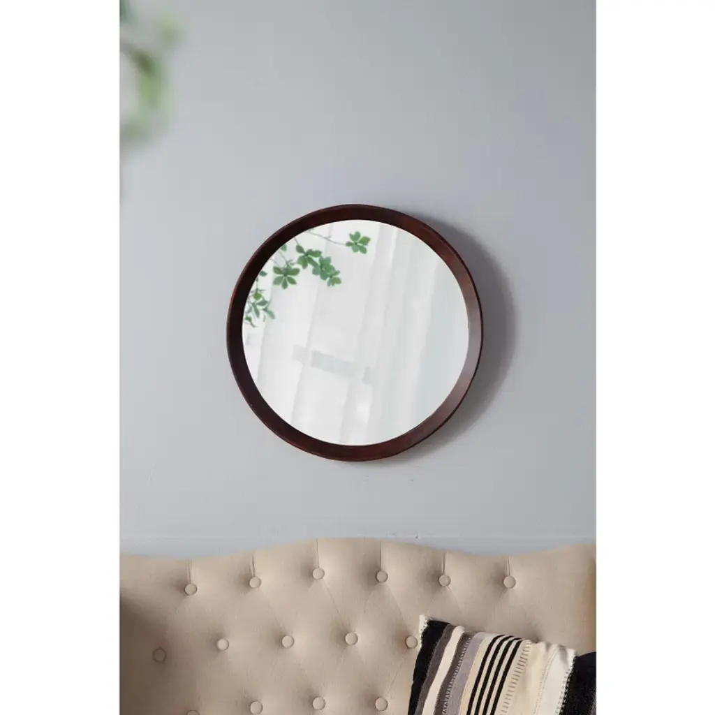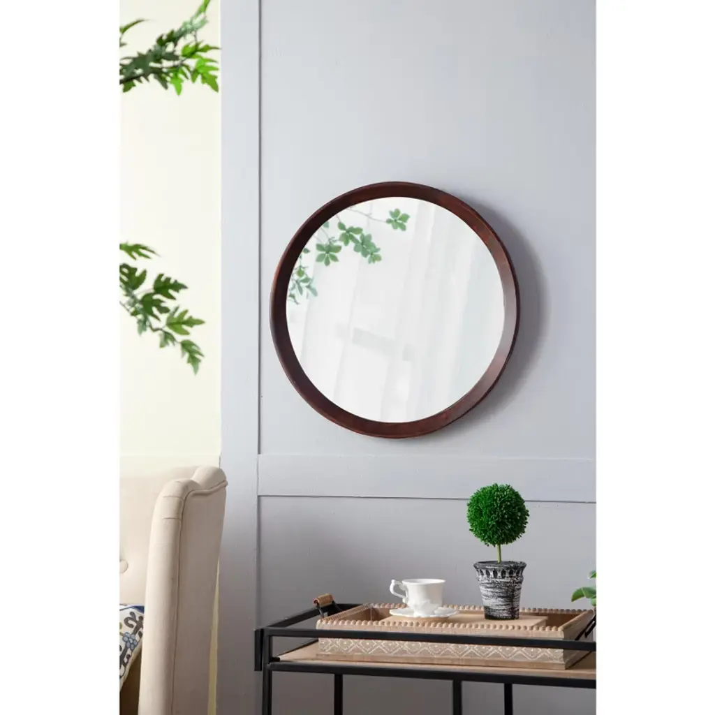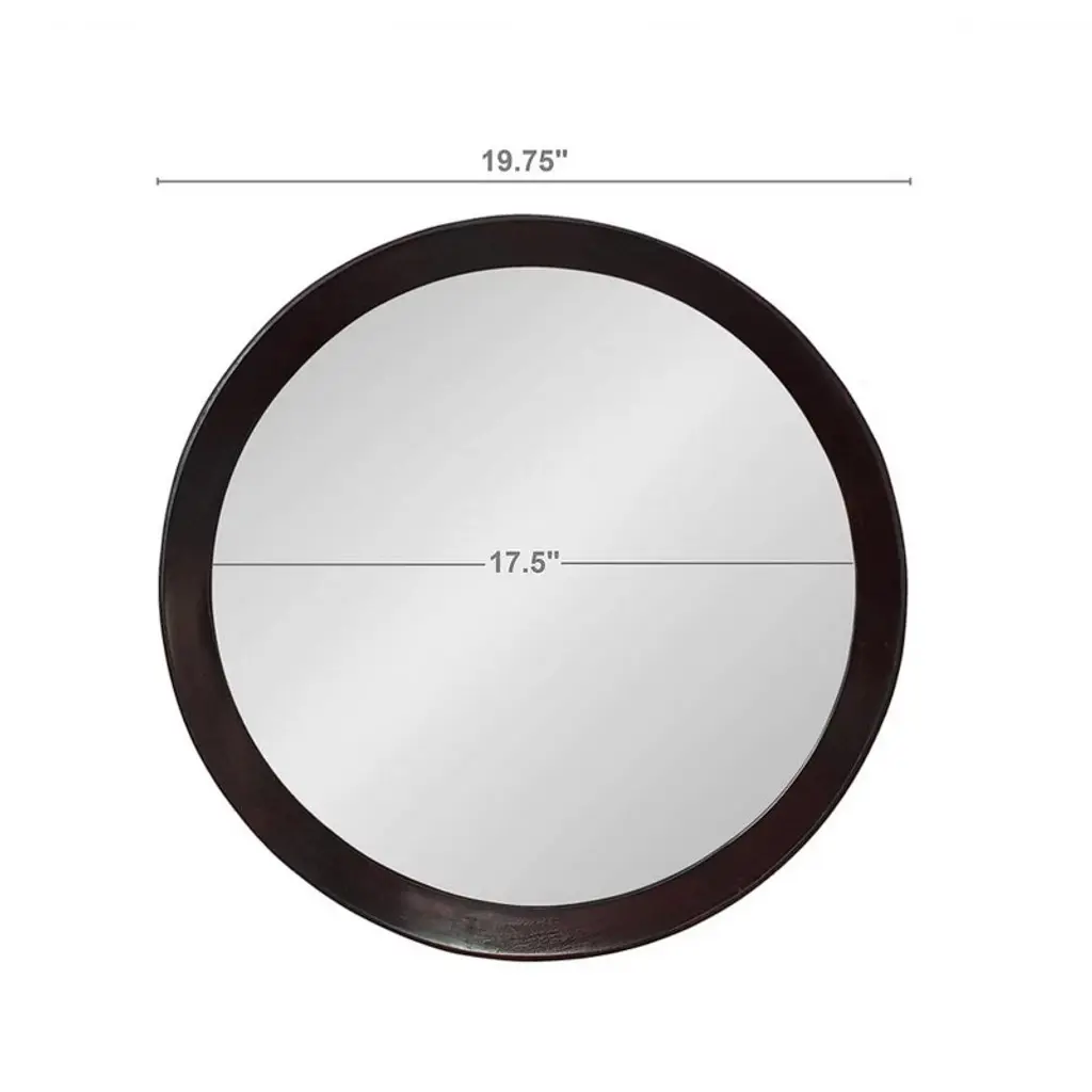 The Design Add a glimmer of light with our Porthole Mango Wood Wall Mirror. This 20¡å round mirror is framed inside of a sleek trimmed brown toned mango wood. Fitting into a transitional decor style, the slightly smaller frame size of the mirror make the perfect accent to a gallery wall. Similar to the light shining into the boats porthole, the light reflects off of the mirror, brightening up the room.