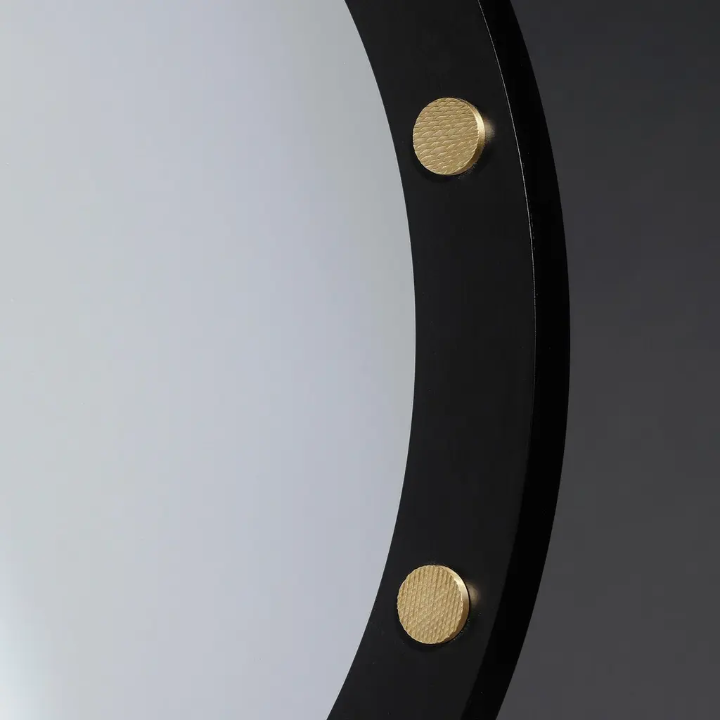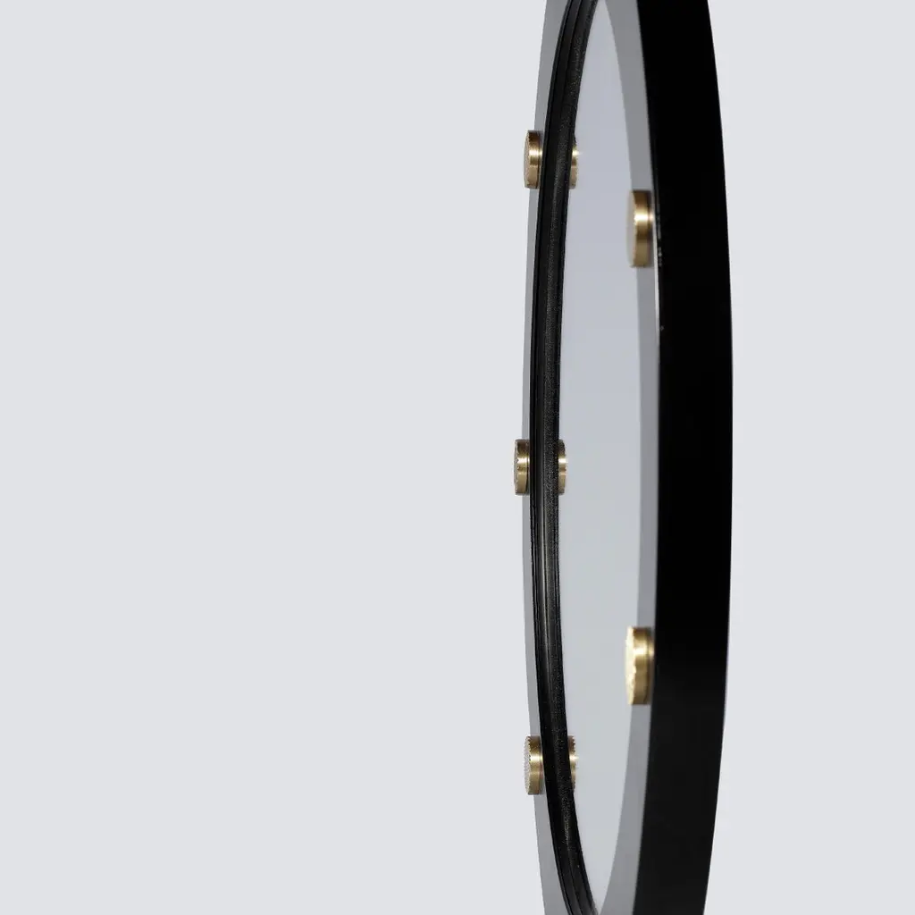 Cluster Round Mirror, in Matt Black Lacquered Iron, Handcrafted in Portugal by DuisttCluster round mirror, crafted with great attention to details, features a matt black lacquered iron structure with carved brass details that will standout in any interior. Shown in Black lacquered Iron structure and carved brass details. Custom sizes and materials available upon request, production lead time 8 to 10 weeks. Designed and manufactured by Duistt in Portugal - Europe. Duistt arose in 2014 from the will and desire to produce high-end furniture pieces with special attention to quality and timeless design. Blending ancient knowledge and techniques with contemporary aesthetics, Duistt’ design approach elevates the user experience, guaranteeing them delightful pieces crafted with art that are absolutely unique and can last generations.