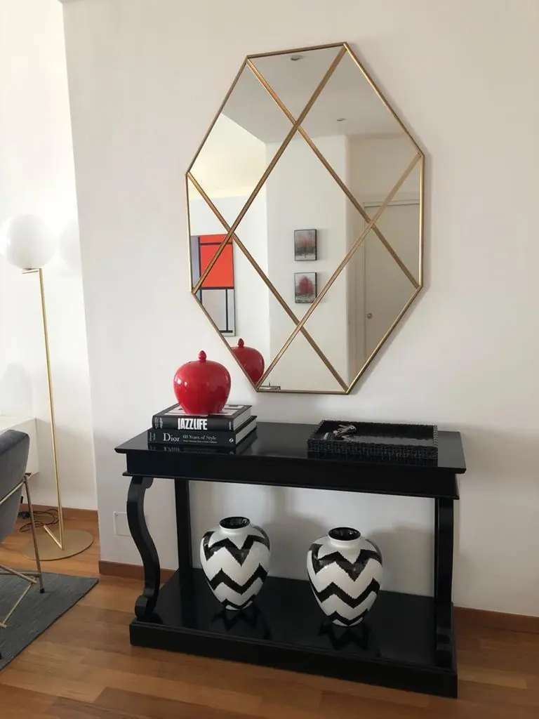 Pescetta presents its new collection of contemporary customizable brass frame mirrors. With frame made of brass and multi panels window look, these mirrors replicate the idea of early 20th century Art Deco style. They suit both modern spaces which need a touch of elegance, both very classical rooms which needs a wall decoration. Each mirror is a unique handmade piece, characterized by Italian quality and taste. Lead time 20 working days.Price refers to a mirror with following characteristics:FRAME: Brass, Aged effect, Double profile SHAPE: Octagonal MIRROR: classic ACCESSORIES: Brass Bars to create the window lookSIZE: 100 x 150 cm / 39 x 59". Customizable. Other size, shape, finishings available.Design your mirror! Many details are customizable:Customize the FRAME- Define shape and size- Choose shiny or vintage brass- Select simple or double profile framePersonalize the MIRROR- Divide the mirror into panels, to have a window look with studs or brass profiles- Choose the kind of mirror: Classic, beveled, smoked, bronze or aged effect.- Add accessories such as lights, hangers or studs.