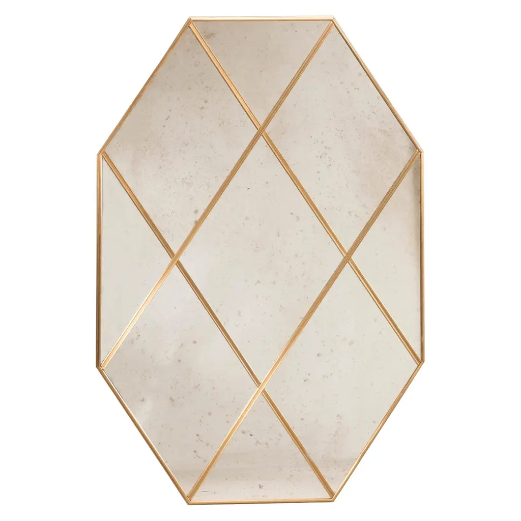 21st Century Octagonal Art Deco Style Brass Paneled Classic Mirror 100 X 150 Cm