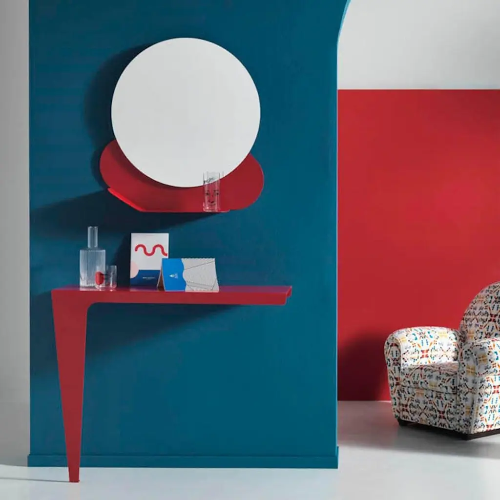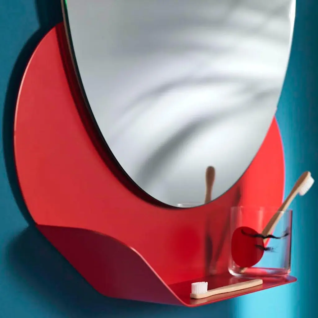 Round" metal mirrorA mirror that's not just a mirror. A refreshingly original design that blends well in a variety of settings, from bathrooms to entrance halls and bedrooms. Equipped with a shelf support.Available in 15 colours from our rangeSupplied with fixing elementsH: 70 cm, W: 70 cm, D: 10 cm, Diameter 60 cmProduction time 4-5 weeks