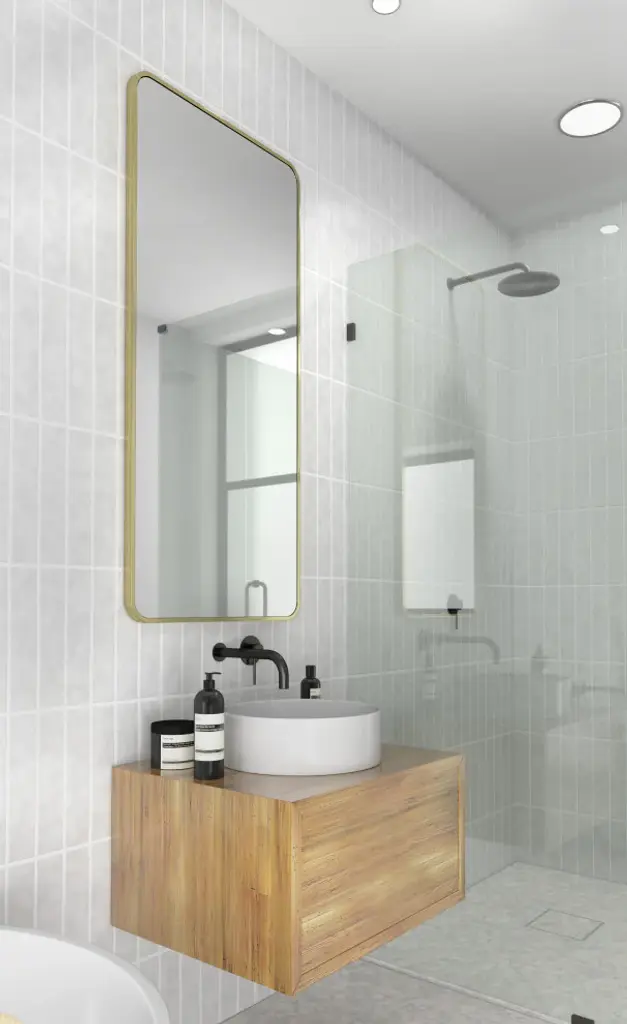 The simple curved corners of our stunning Trinity mirror will complement any modern decor. Mount it or prop it against the wall. Hang it horizontally or vertically. Whatever you choose, this beautiful mirror will bounce the light around any room of your home.