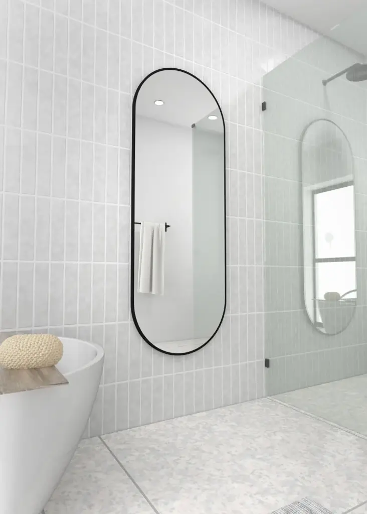 22" W X 60" H Pill Shape Stainless Steel Framed Mirror, Black